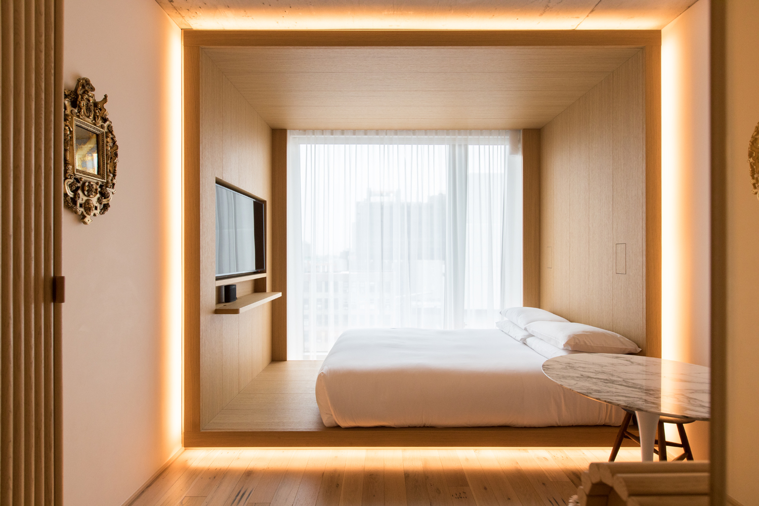 Every one of the 380 guest rooms features at least one custom bed – 400 in total – designed and crafted by Molteni&C from natural oak.