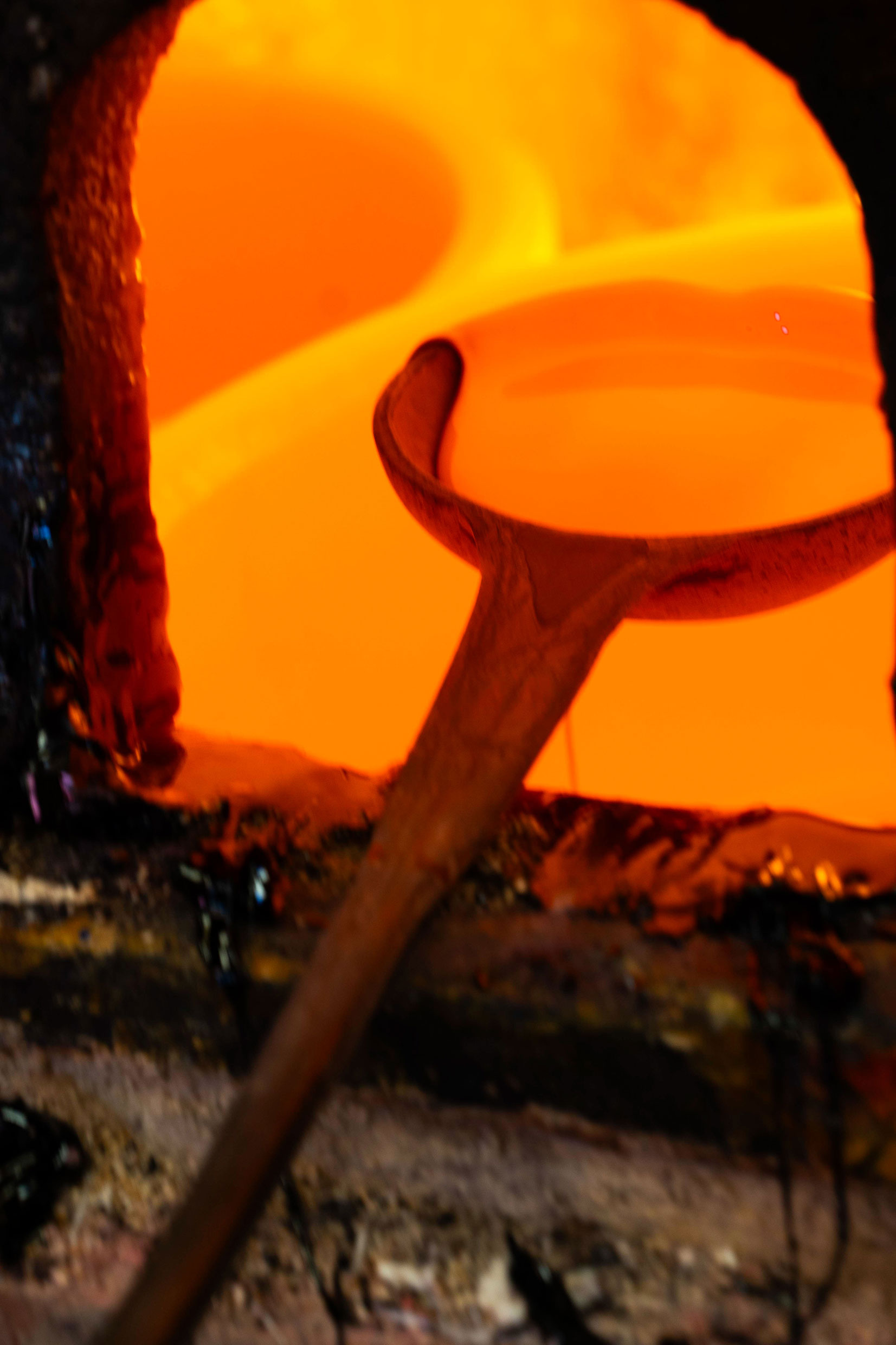 Inside the historic Orsoni Venezia furnace, the Molteni&C Heritage Collection pieces and modern designs conjured a magical transformation. The D.154.2 armchair and D.555.1 small table by Gio Ponti, along with the MHC.2 bookcase designed in 1959 by Yasuhiko Itoh, gracefully welcomed guests at the entrance of the 'Sala Dell'Oro,' where Orsoni's 19 shades of gold, a fusion of glass and the most precious metal, 24-carat gold, are meticulously crafted. This unique craftsmanship process, entirely handmade, reflects the essence of Venetian artistry.