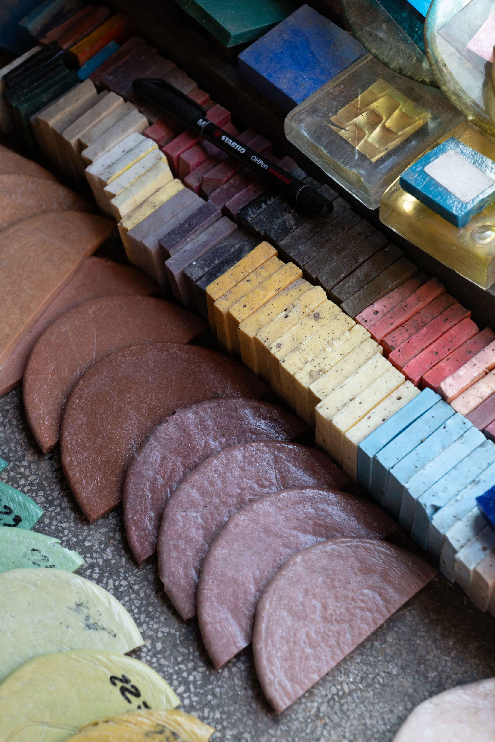 Displaying more than 3,500 tones and shades, the Orsoni Color Library is where the Venetian smalti, or the handmade ceramic tiles used in mosaic, are carefully kept and cataloged by nuance. A living archive of an outstanding artistic heritage, the library offers an immediate encounter with the endless possibilities innate to the art of mosaic.