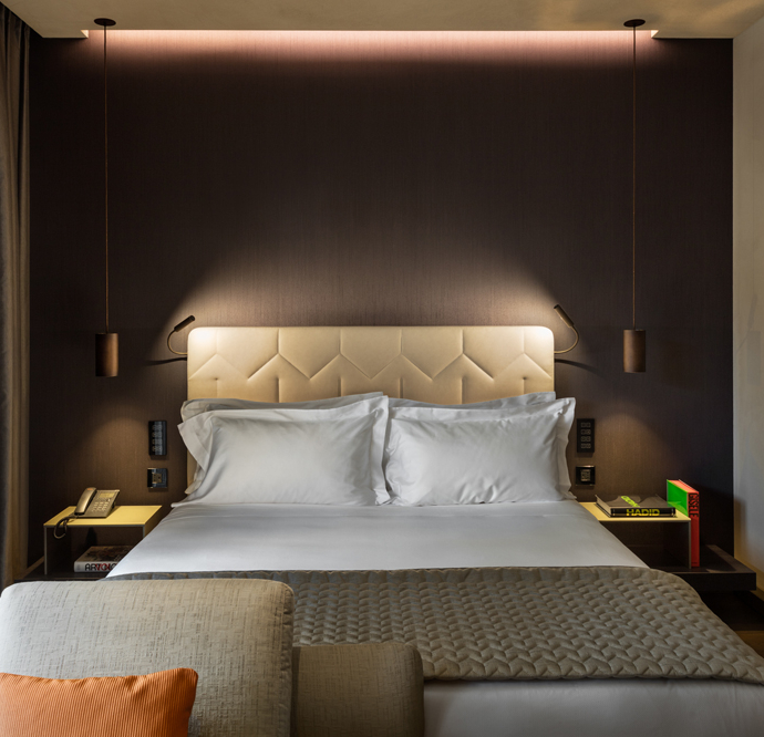 Set in the heart of the emerging Porta Volta neighborhood, Hotel Viu Milan manages to capture the zeitgeist of the modern-day city with its progressive and sustainable architectural concept, while honoring the classic aesthetics of Milanese design with its sleek interiors. The visual concept of the hotel’s interiors was entrusted to Arassociati Studio and Nicola Gallizia Studio.