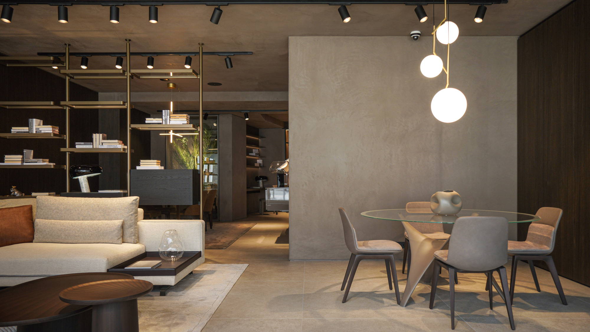 The store is gracious and fluid, providing guests with the opportunity to experience a sequence of evocative settings. Inside, it showcases a global choice of furniture from the Molteni&C Collections.