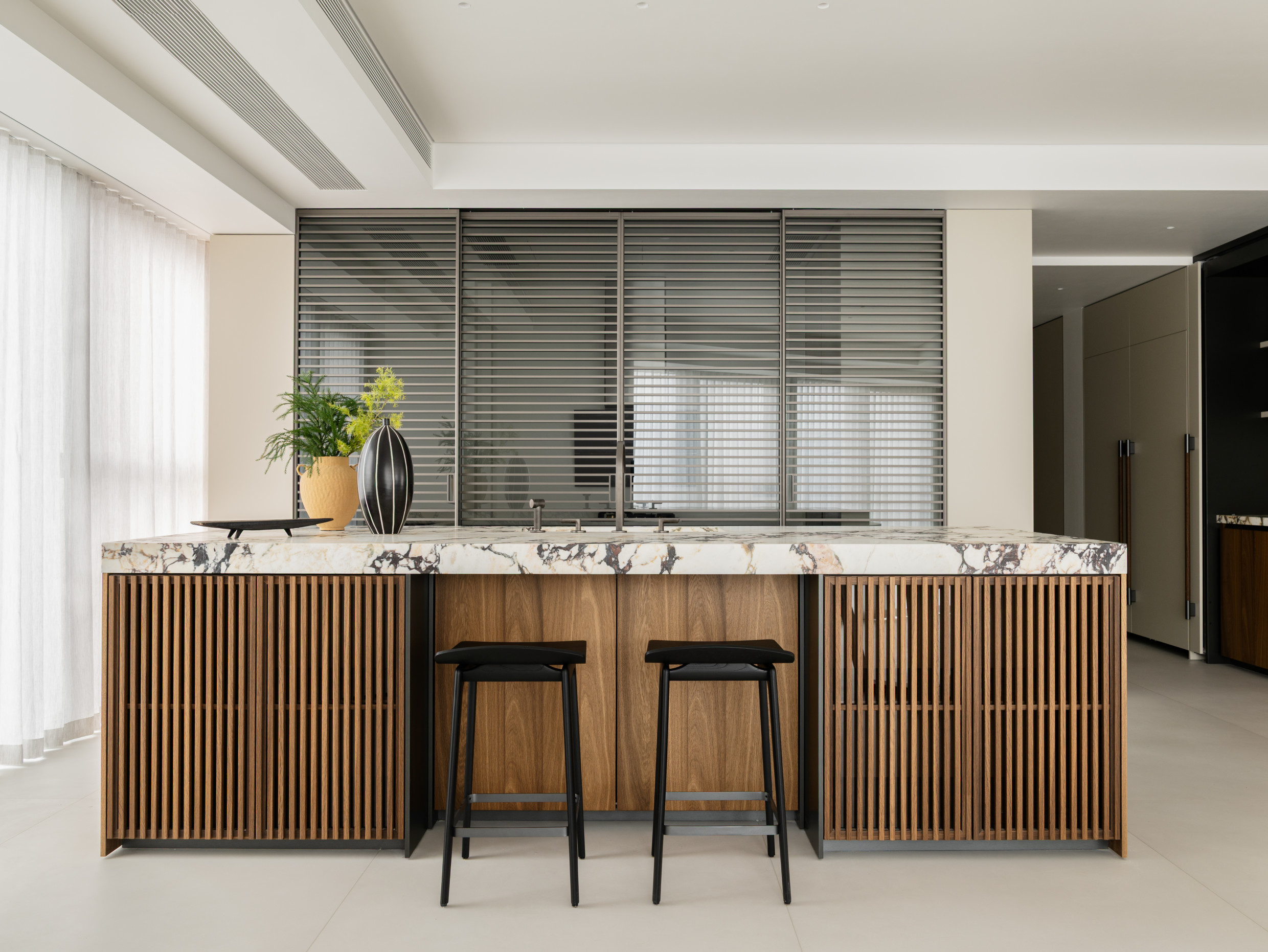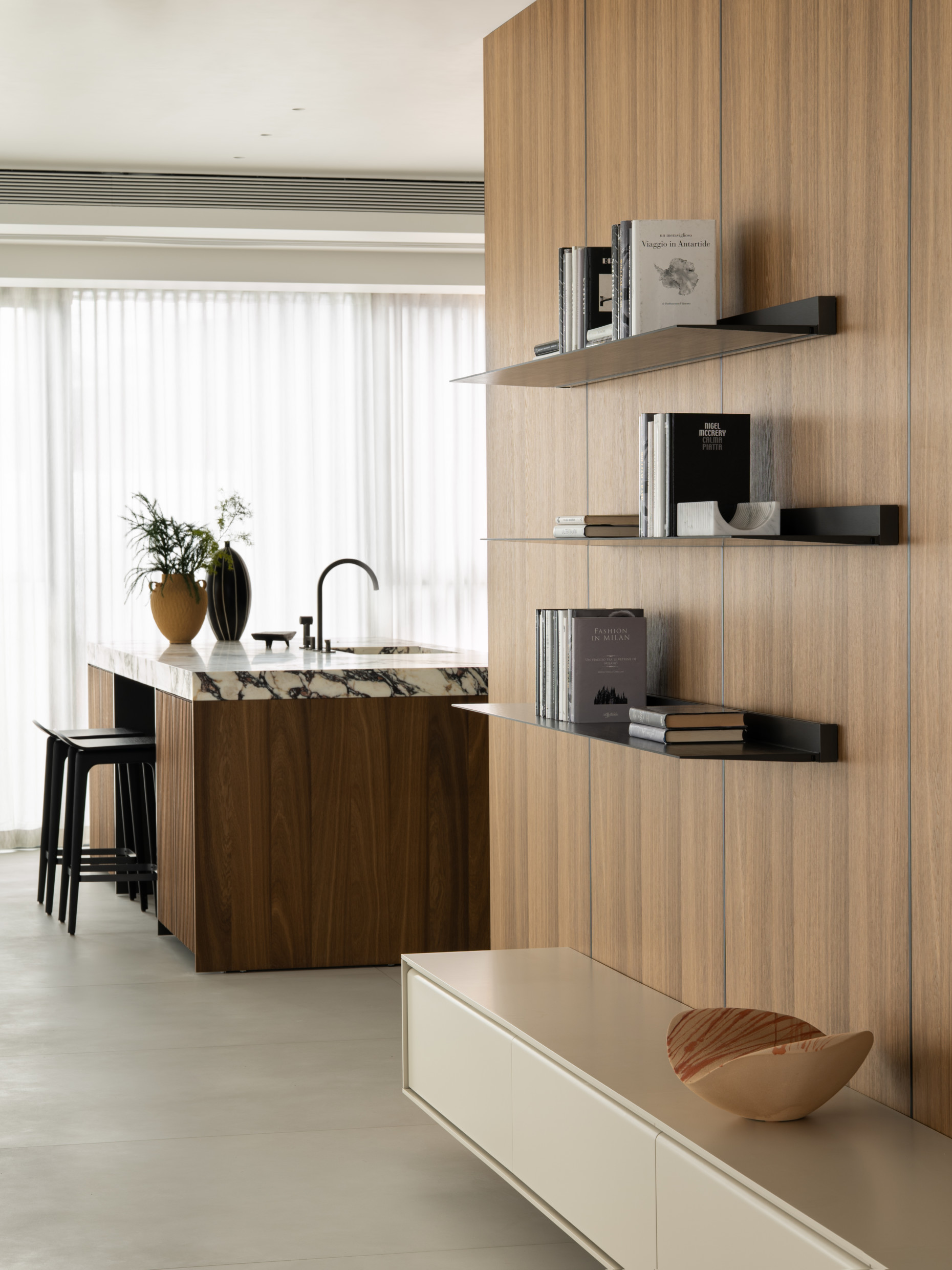 The Tivalì 2.0 kitchen, designed by Dante Bonuccelli and the Ratio kitchen by Vincent Van Duysen, chosen to enrich the appartments, exudes understated modernity, effortlessly balancing Dada Engineered innovation with exquisite design.​
