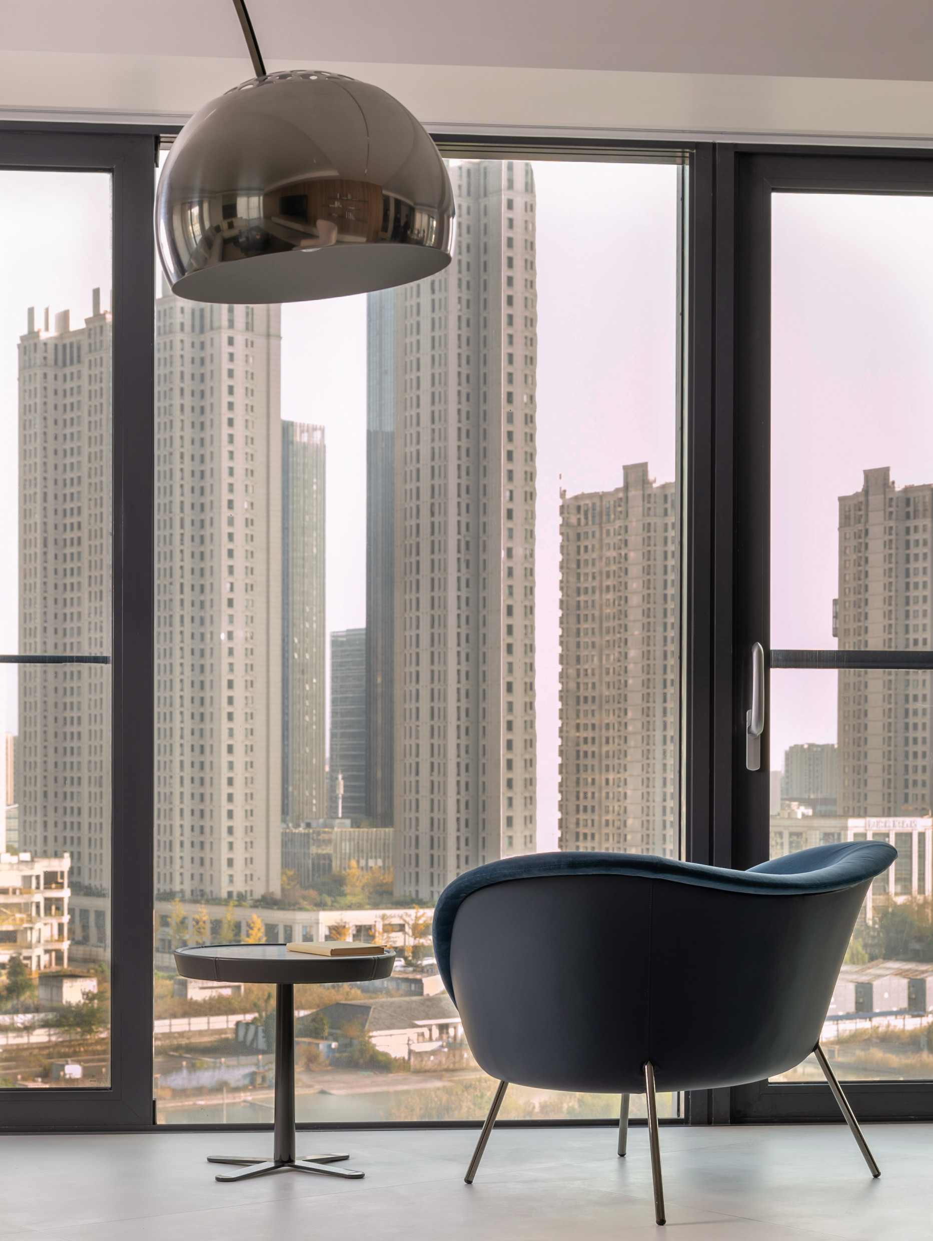 The apartments are further adorned with the D.847.1 writing desk alongside the D.154.2 armchair by Gio Ponti, to create a cohesive narrative between the pieces' architectural brilliance and Ningbo Dibao's distinctive construction.