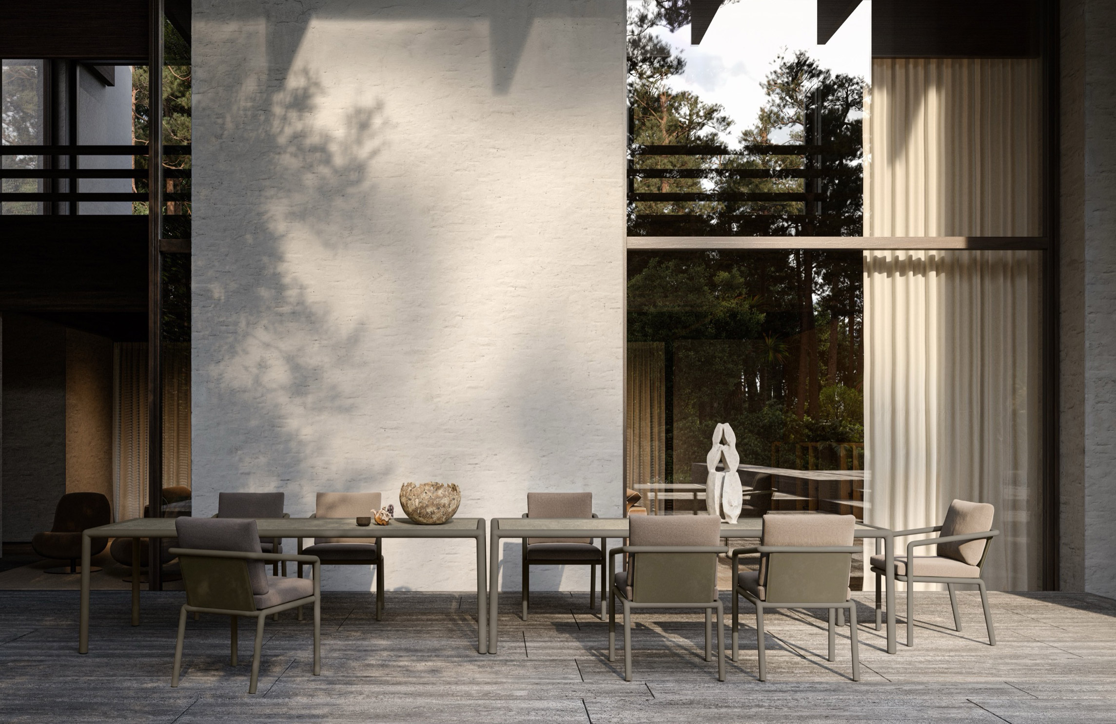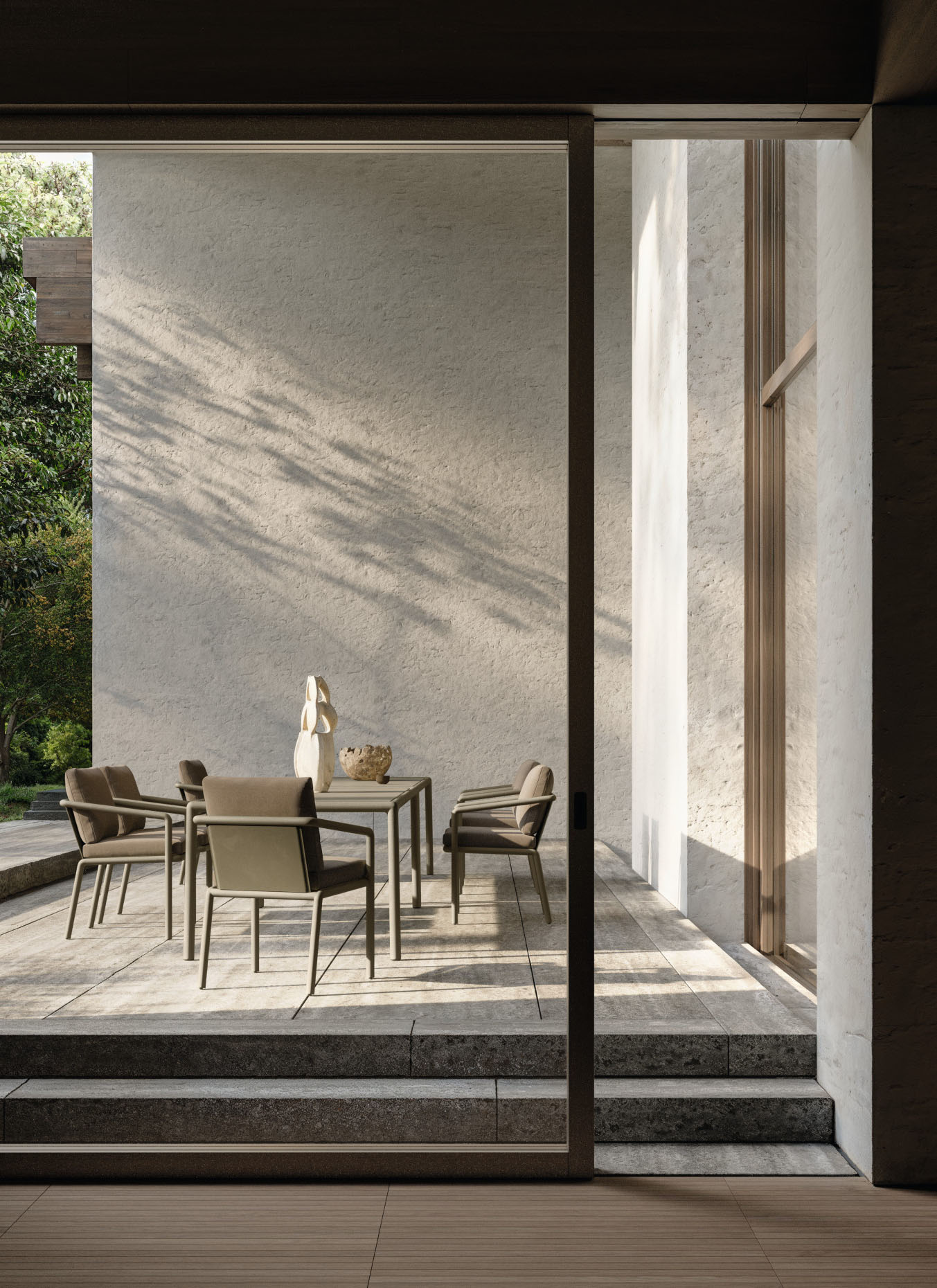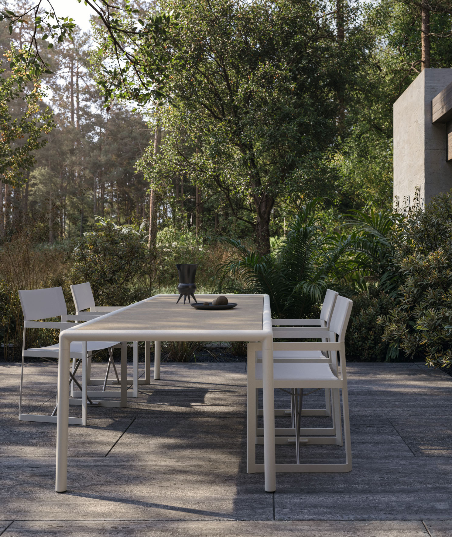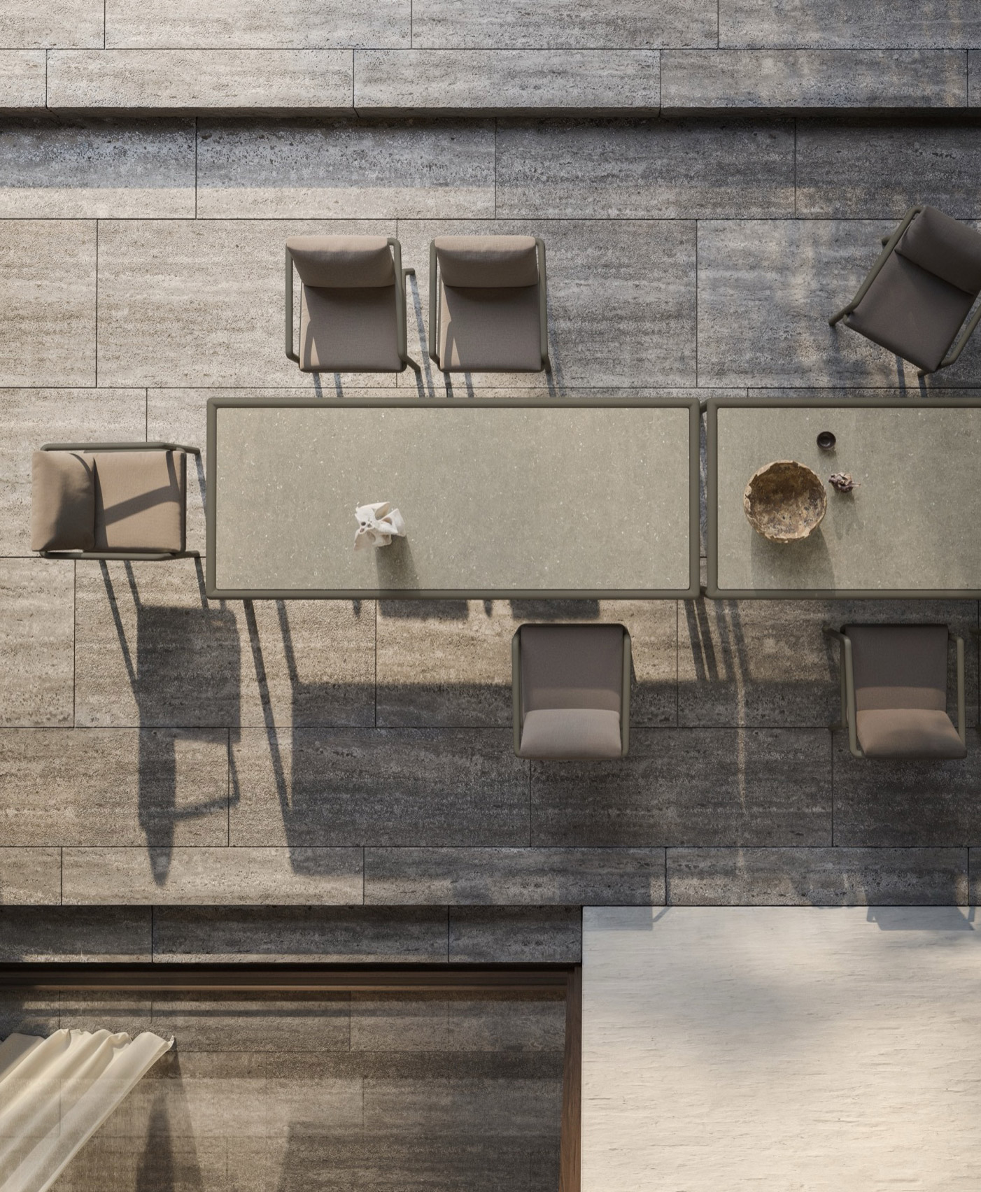 这款餐桌可完美搭配 Soleva 餐椅,化身户外生活的核心所在。在此,亲朋好友亲聚一堂,享用美食、畅谈欢笑,回归大自然,静享悠然时光。
