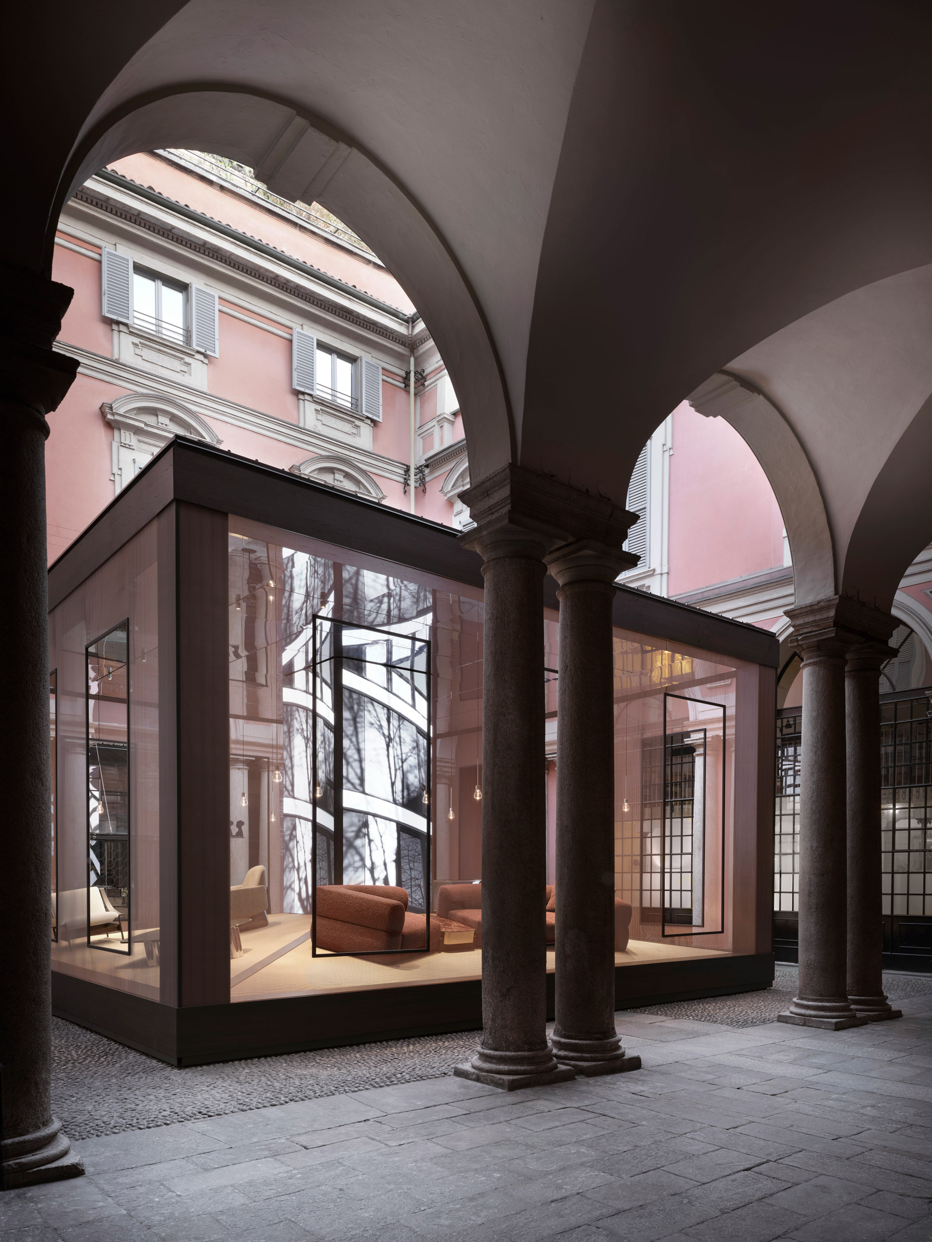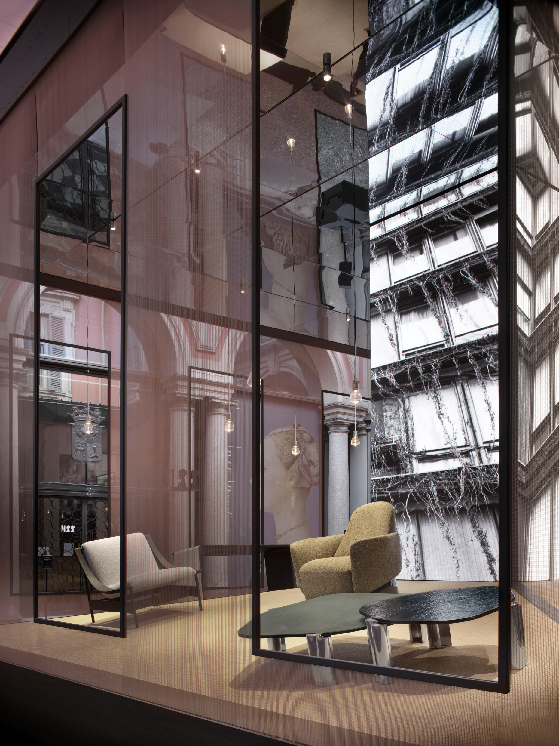 Während der Mailänder Designwoche interagiert Molteni&C mit der Stadt durch zwei besondere Installationen im Museo Poldi Pezzoli, die sich im Innenhof, in der Orangerie und in der Rüstkammer befinden: Letters to Milan kuratiert von Studio Klass und Gio Ponti Objects kuratiert von Elisa Ossino Studio.
