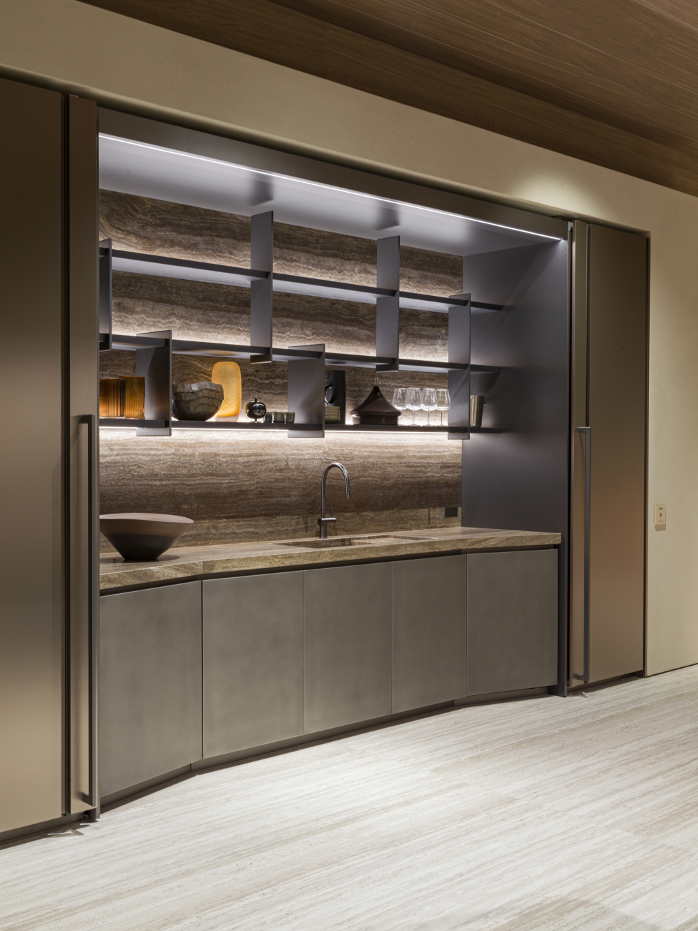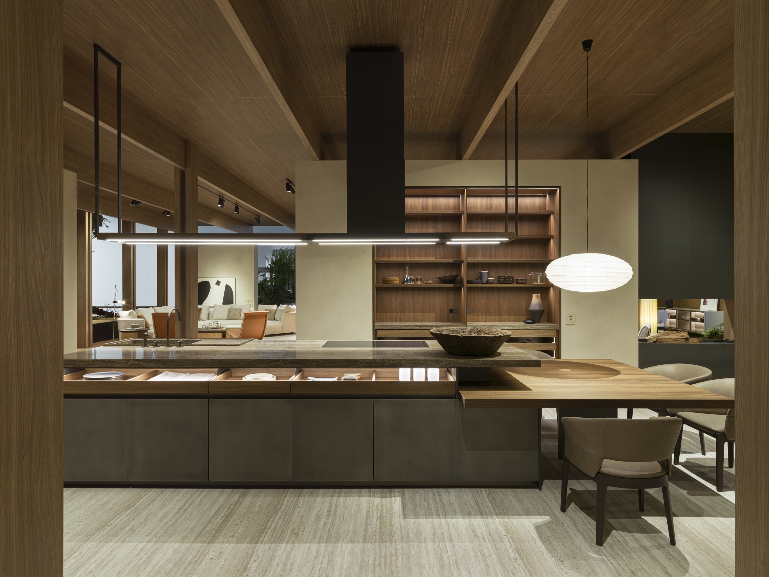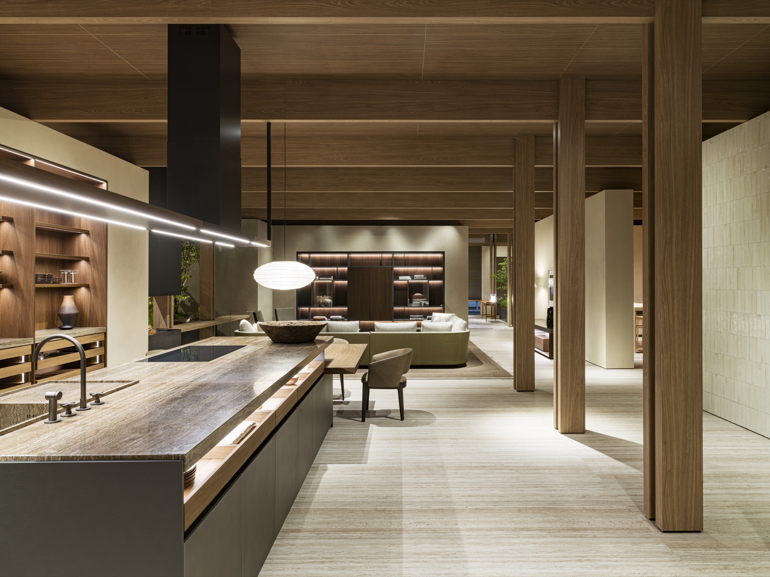 Molteni&C new home concept, conceived by Vincent Van Duysen on stage at the 2022 Salone del Mobile.Milano. Light becomes an integral part of the design of the space, because it modulates the way the architectural composition is perceived and expressed. Recalling the words of Walter Gropius: the new Architecture opens the walls, as if they were drapes, to allow as much fresh air, light and sunshine to come in.
