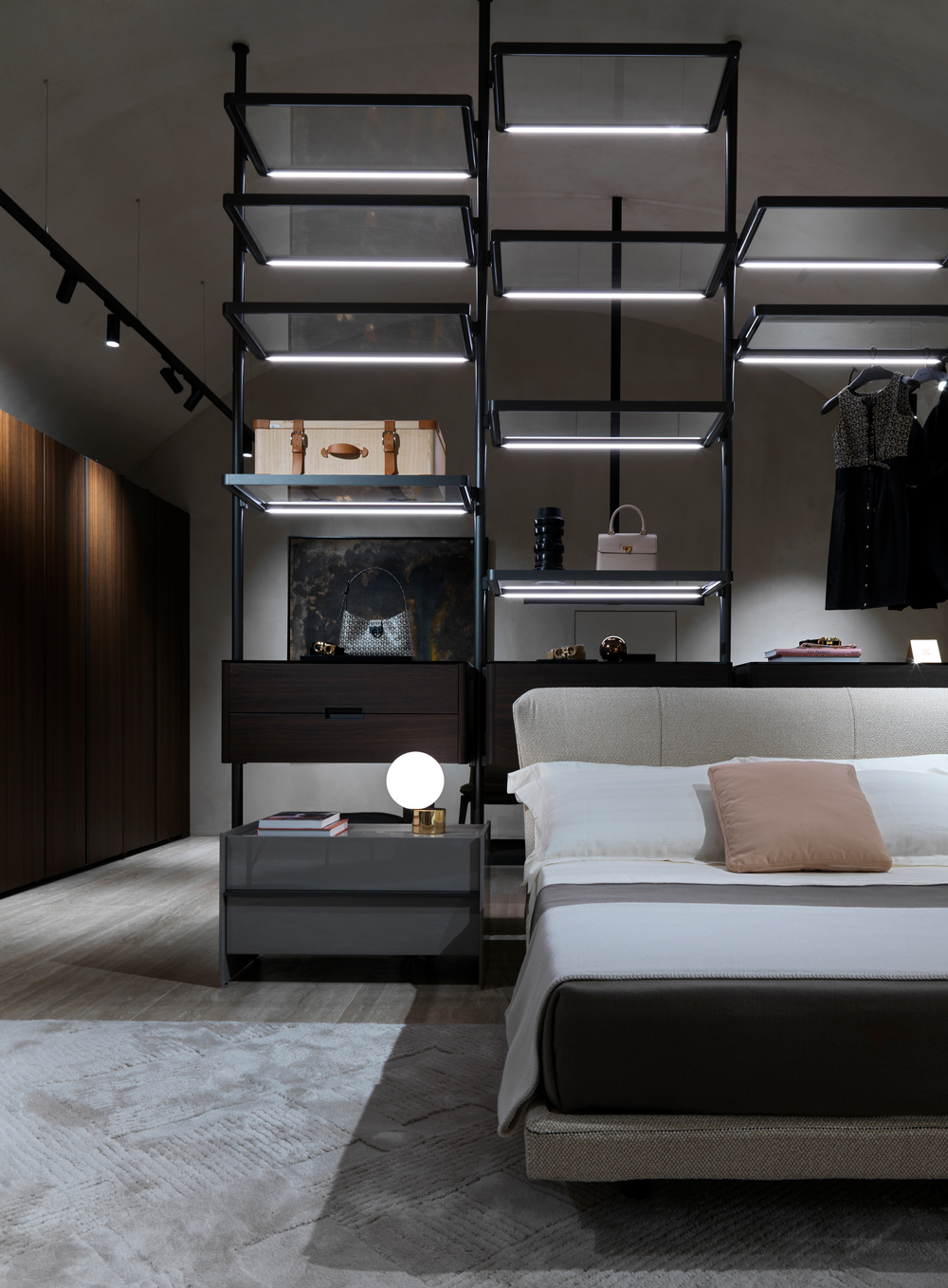 The night-time area features a sequence of Gliss Master wardrobes, a Hector Night composition, and an Azul bed.