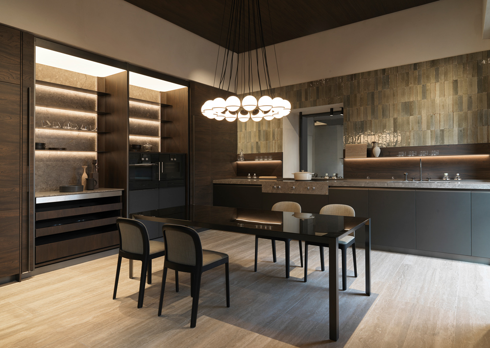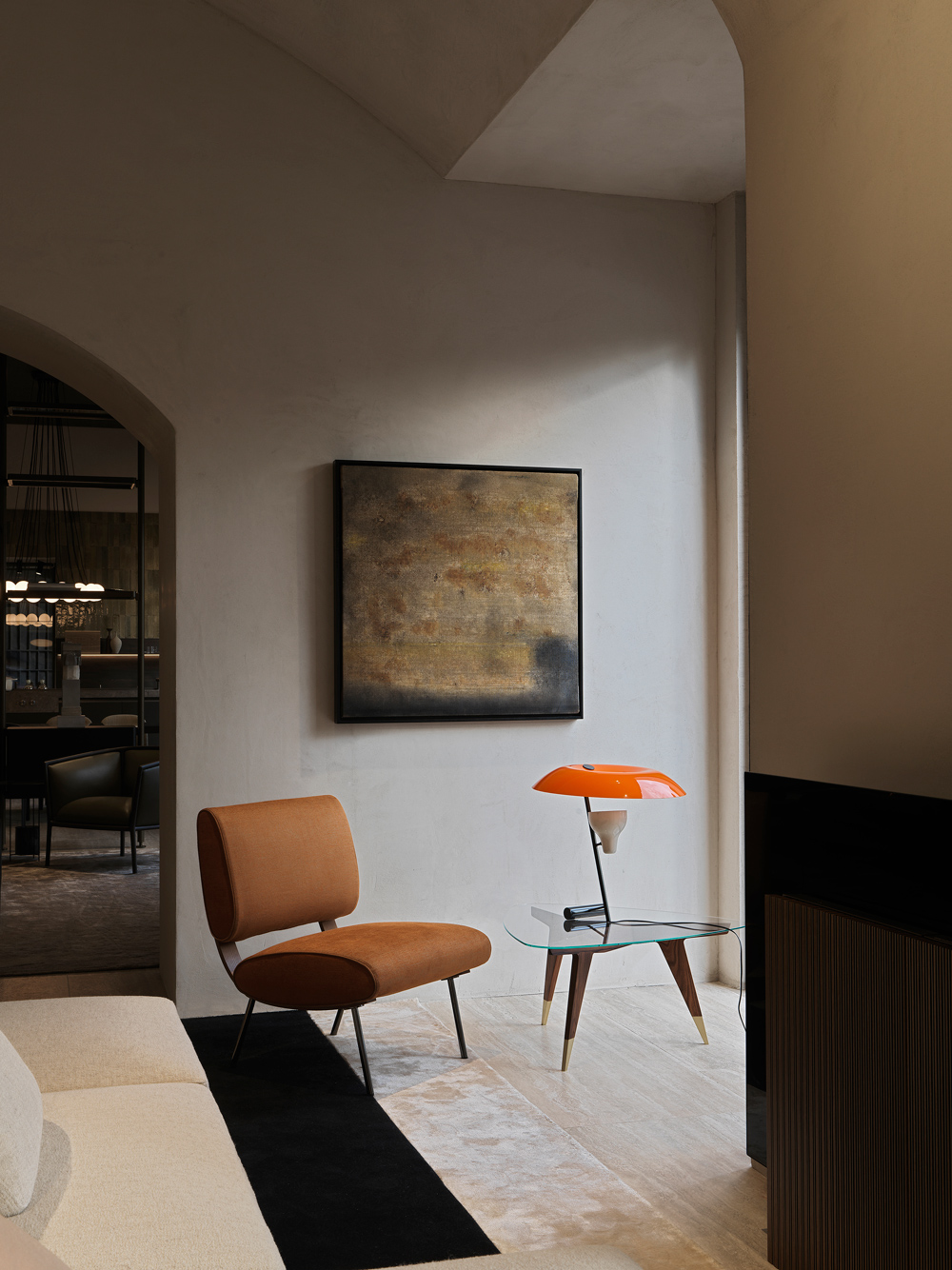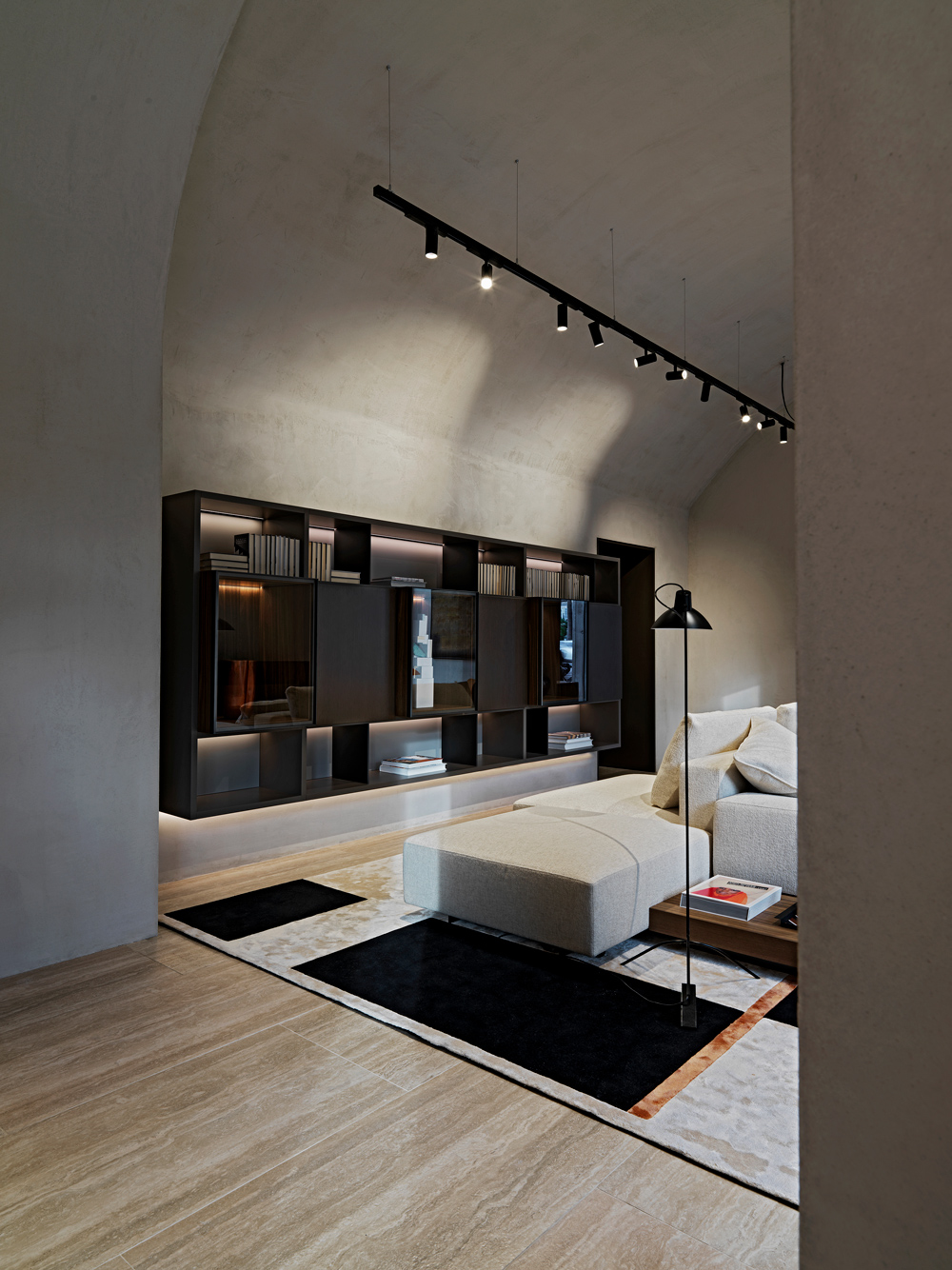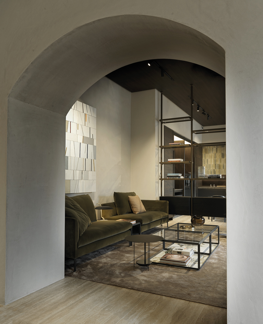 The space is warm, dimensional, fluid and always legible through distinctive details. The impressive showroom houses, frames and enhances the products in the new Molteni&C|Dada collections.
