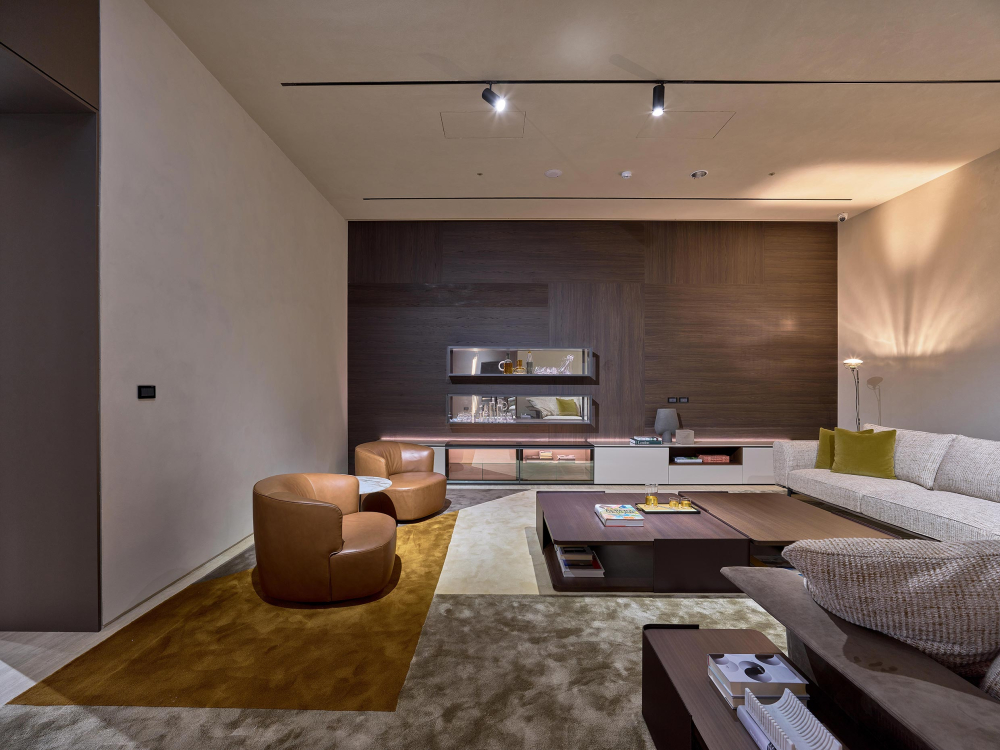 The textural path inside the second store alternates living, dining and night zones featuring furnishings from collections that embody the highest expression of Italian savoir-faire.
