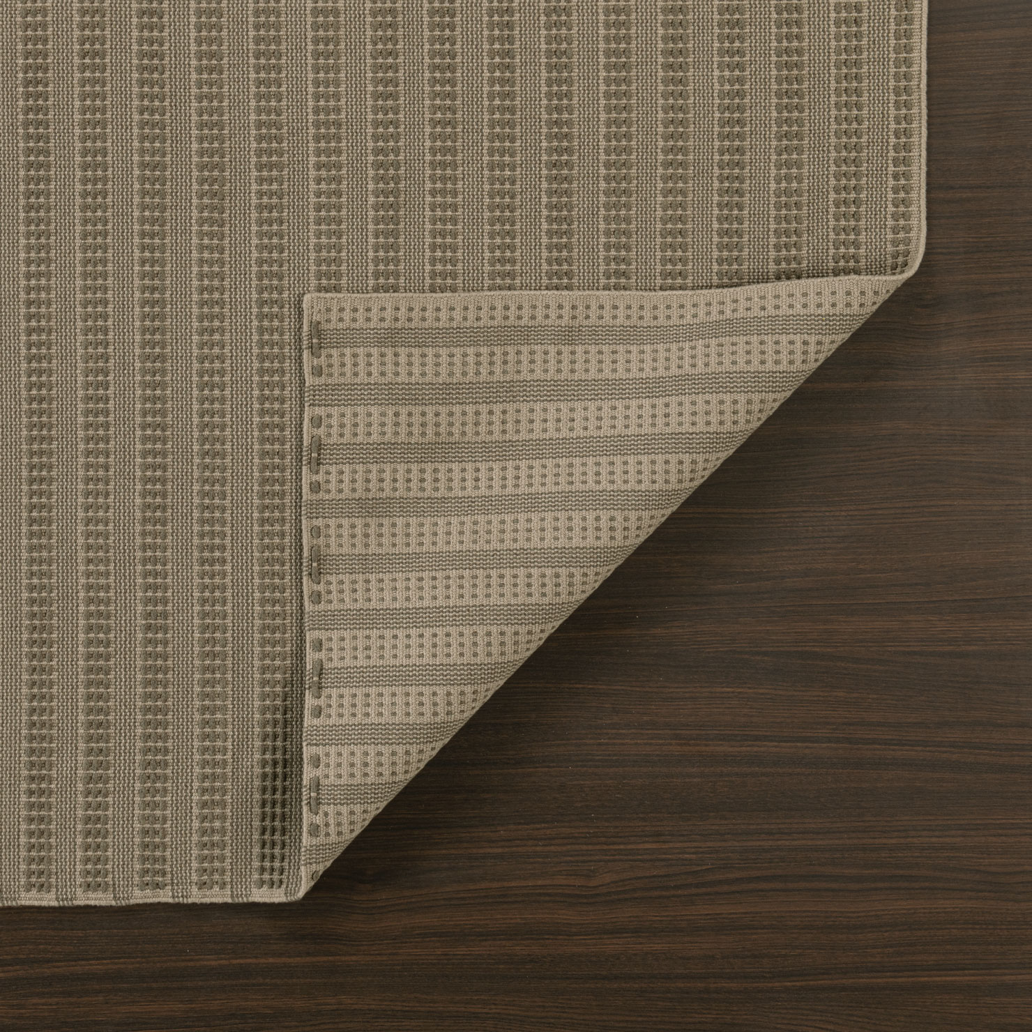 Hedera, diseñada por Vincent Van Duysen, es una alfombra rectangular disponible en tres tamaños, que alterna finas rayas beige y verde oliva, creando un movimiento lúdico y armonioso. Un motivo moteado, delicado pero decidido, diseñado para combinar tanto con la esencia de la madera como con la materialidad del hierro bruñido.