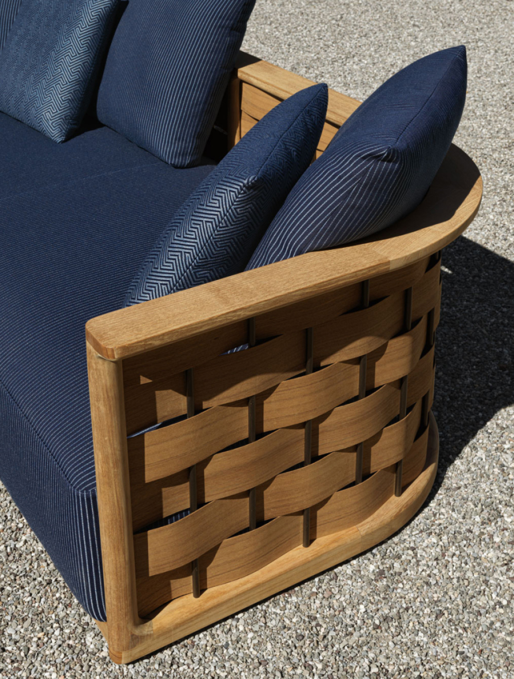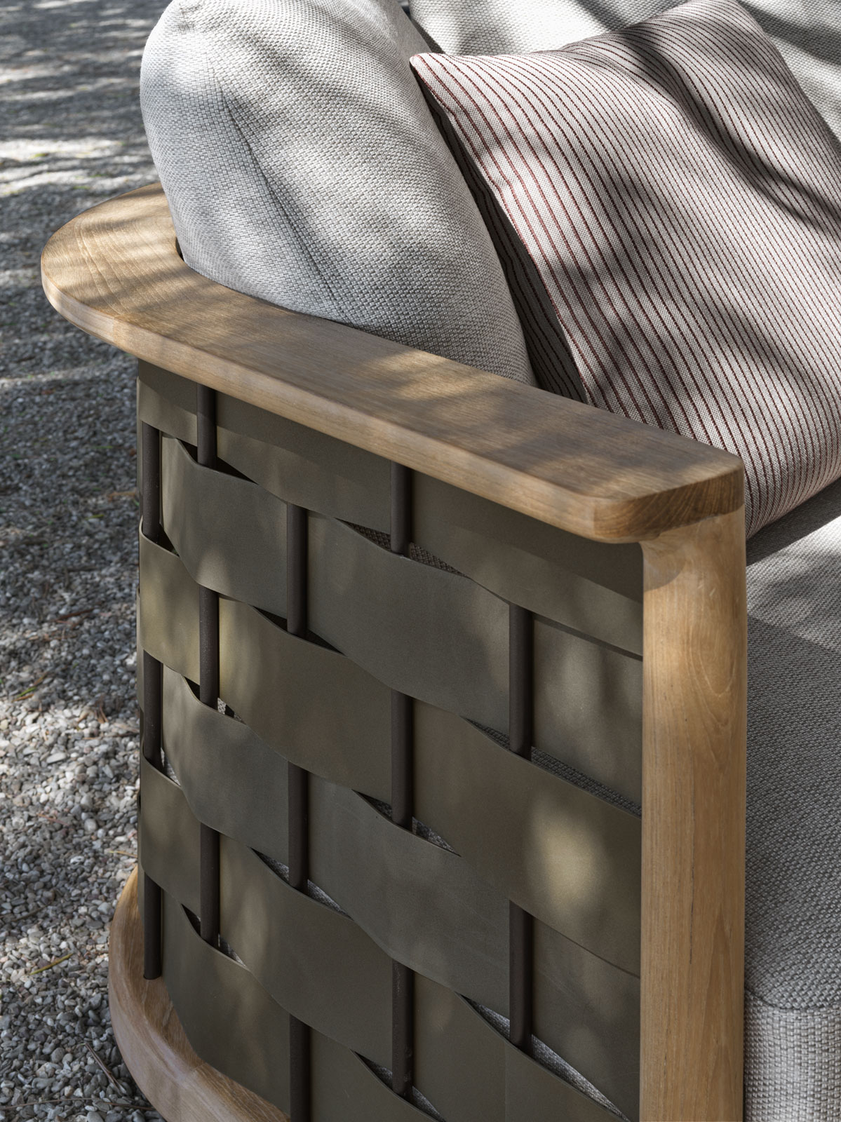 El Sofá Palinfrasca, con su forma icónica inmediatamente reconocible, rinde homenaje a la obra de 1994 de Luca Meda en la que se inspira, interpretando la esencia de la teca no solo de una forma inédita y contemporánea, sino también en la representación más exhaustiva del savoir-faire y la investigación de Molteni&C sobre los materiales: un conocimiento adquirido en los casi noventa años de vida de la empresa, fundada en 1934.