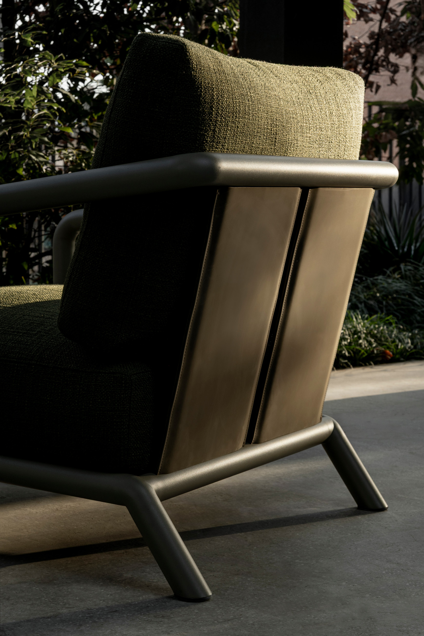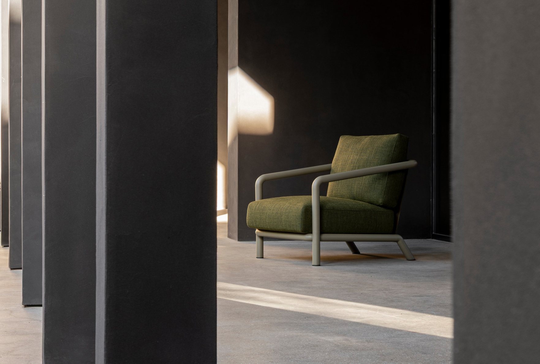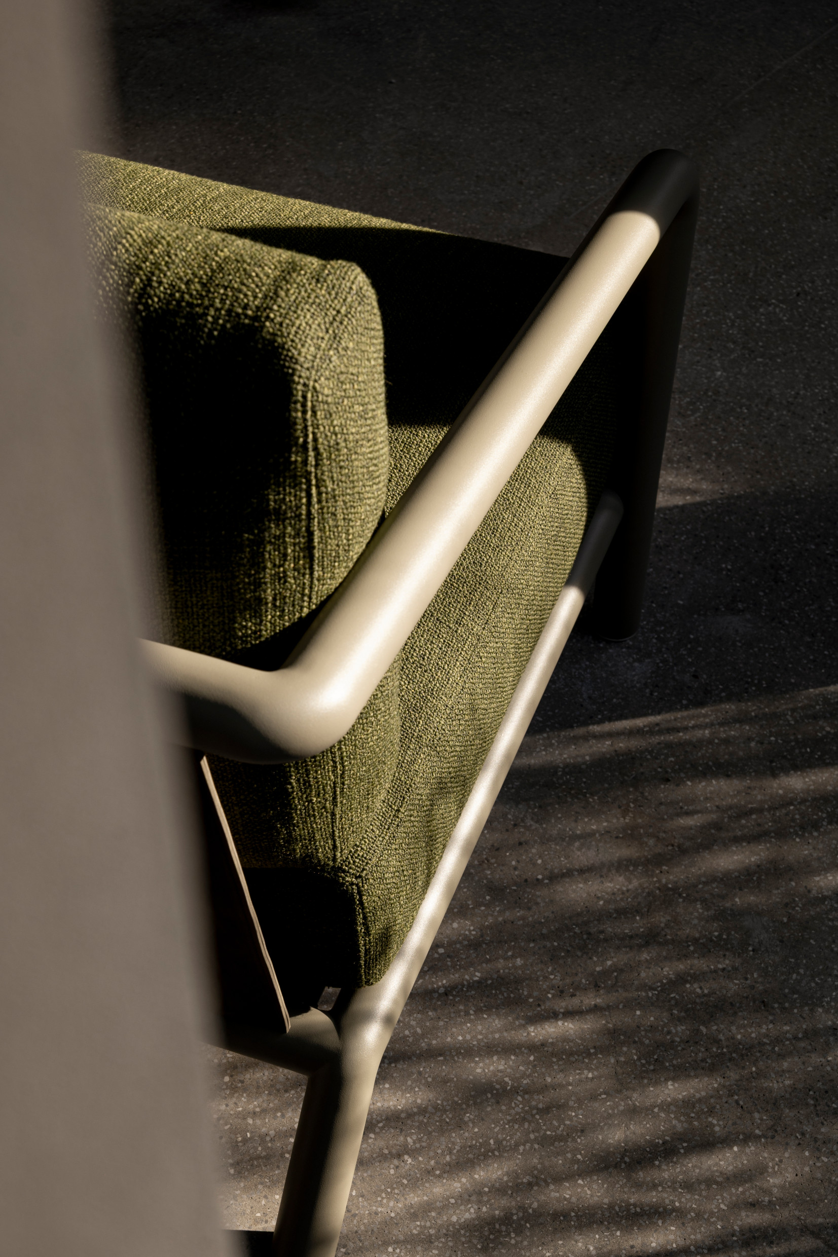 El sillón Soleva, diseñado por Vincent Van Duysen, transmite claridad con su silueta esculpida y aporta solidez y presencia a los espacios exteriores. Su estructura tubular continua de aluminio traza un contorno preciso, suavizado por las delicadas curvas que crean una forma acogedora y envolvente. Este sillón destila la esencia de la familia Soleva en un elemento clave para la vida al aire libre, ya que invita a disfrutar de los momentos de pausa y reflexión, rodeados de naturaleza.