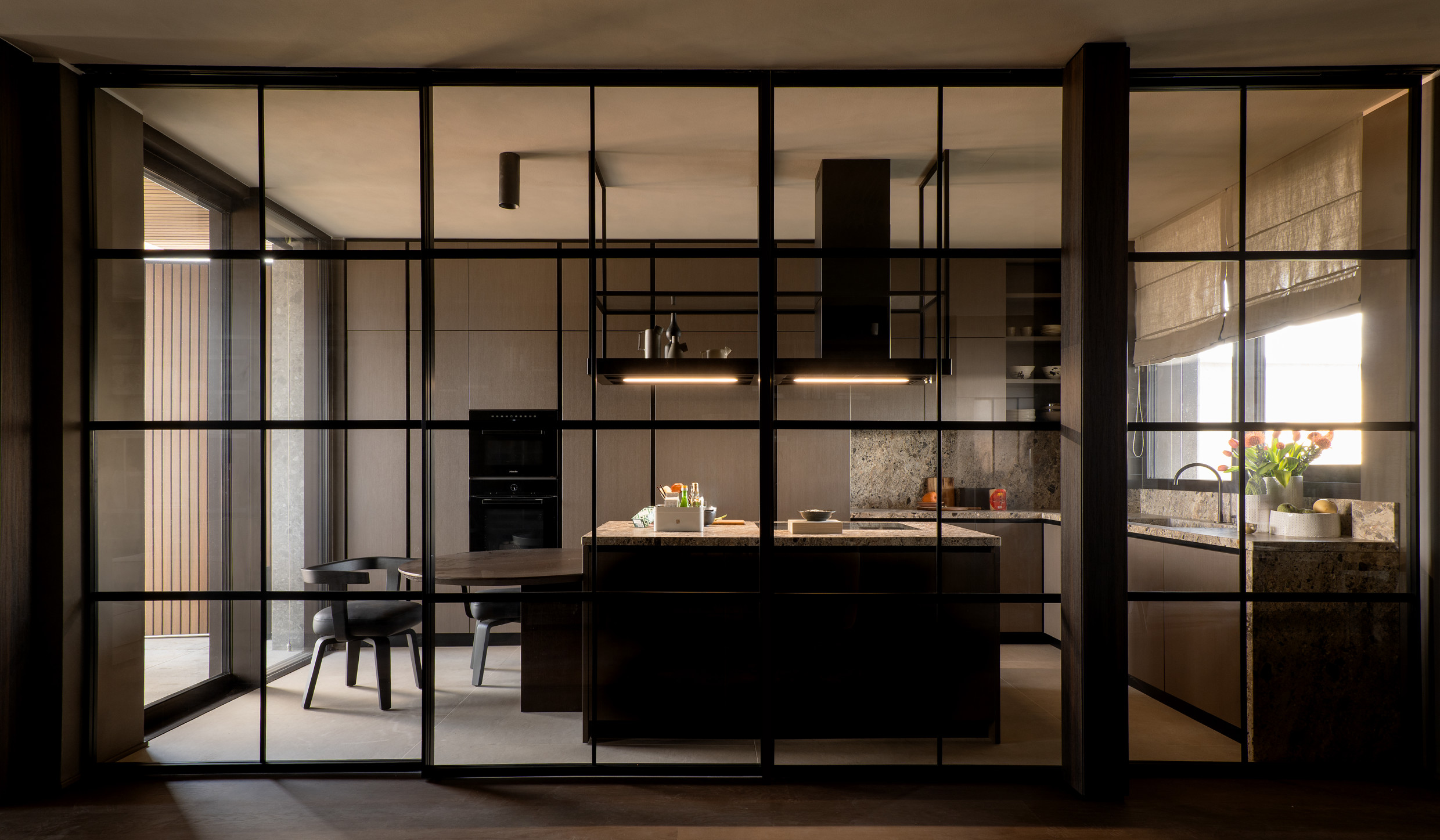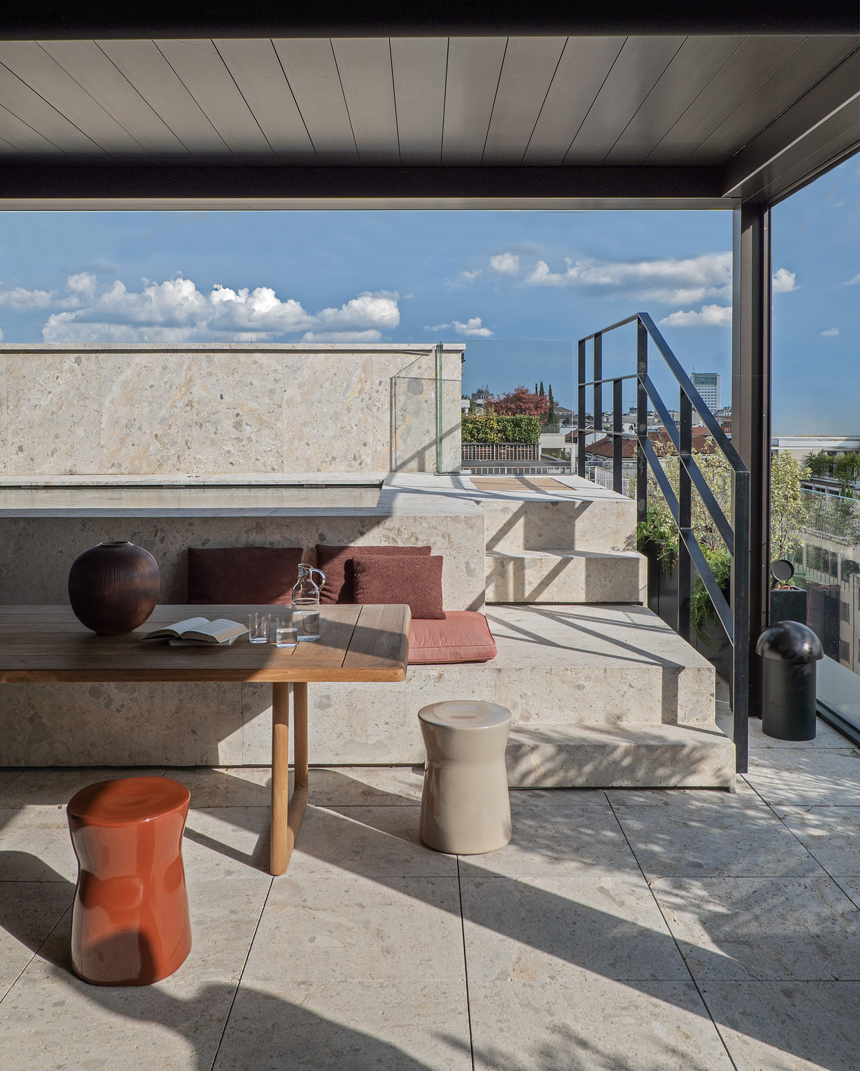 Both indoors and outdoors, the penthouse has been mindfully designed to feature pieces from across the Molteni&C Collections.