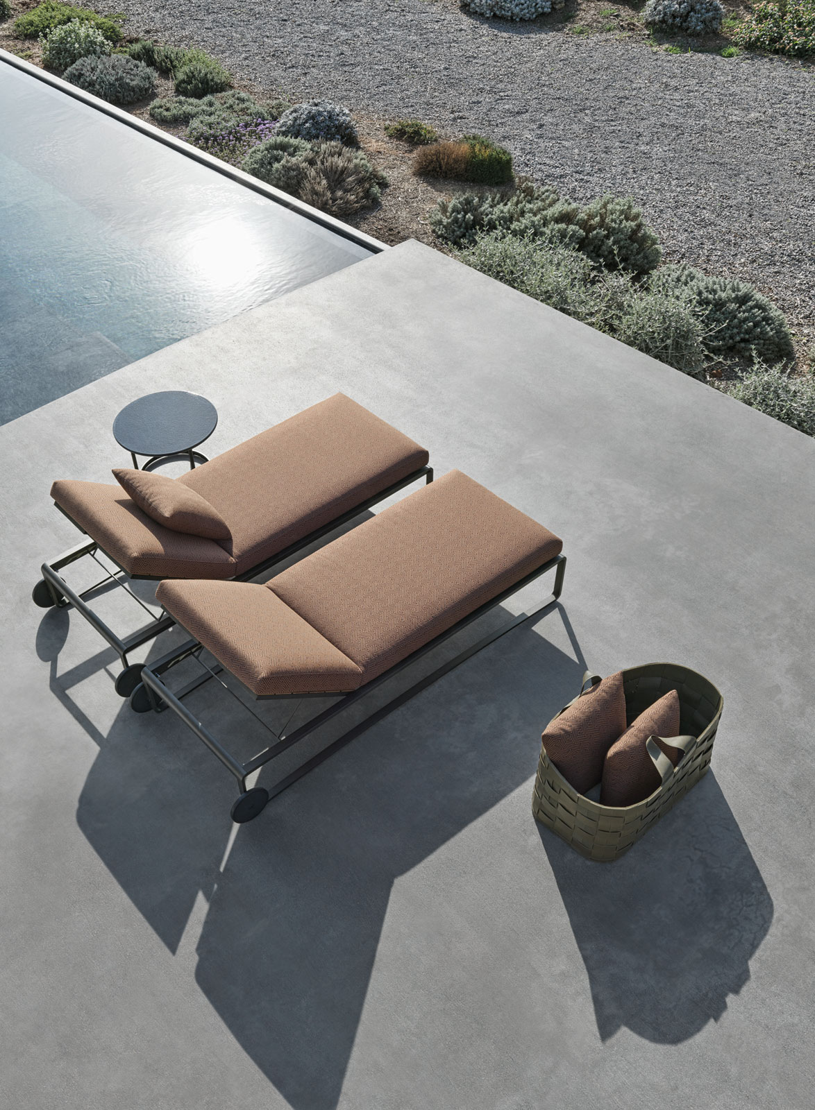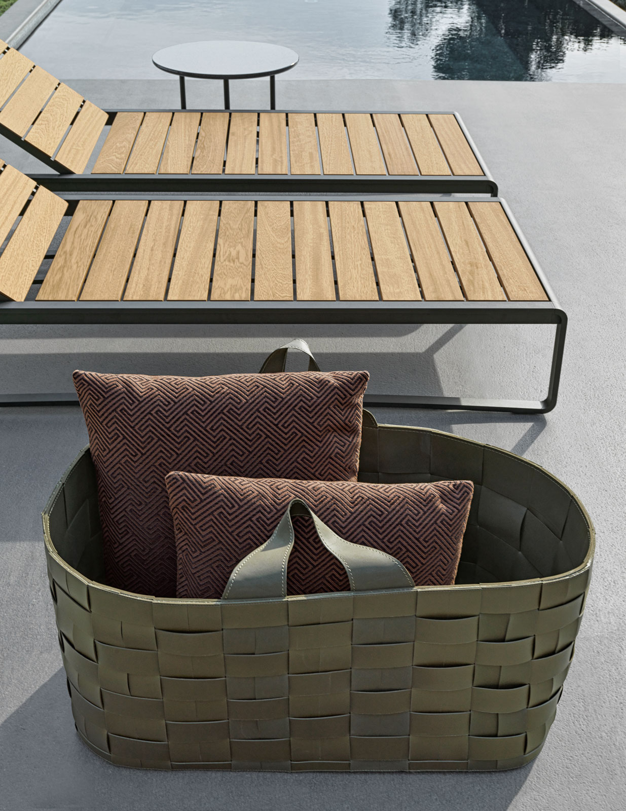 Premier produit d'une gamme d'accessoires qui prendra de l'ampleur à l'avenir, les paniers témoignent de la recherche, sous-jacente aux collections outdoor de Molteni&C, de ce confort total qui invite à la détente et à la convivialité, où chaque élément a sa place.
