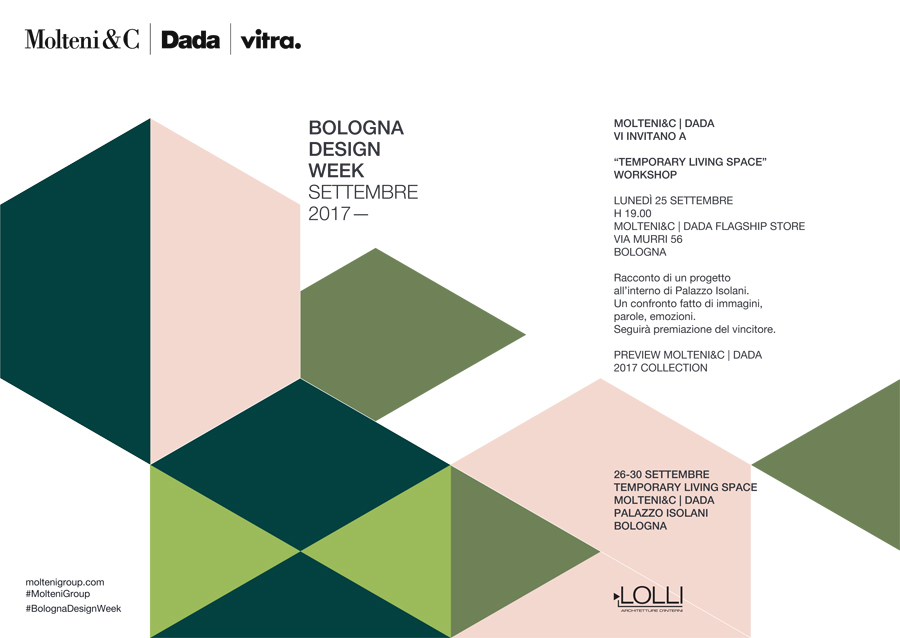 Importante novità per la terza edizione di Bologna Design Week: Molteni&C|Dada, in collaborazione con Youtool, organizzano il workshop “Temporary Living Space” dedicato alla progettazione di uno spazio temporaneo living di 70 mq da allestire presso il settecentesco Palazzo Isolani.
