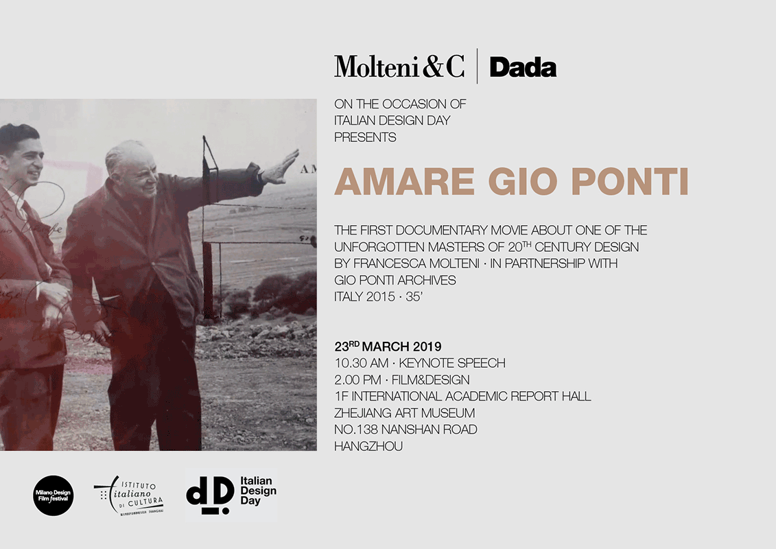 Molteni&C|Dada in collaborazione con MDFF partecipano con il film Amare Gio Ponti ai Hangzhou Design Days, un progetto di promozione global sostenuto dalla Farnesina per promuovere a livello internazionale le eccellenze e le peculiarità del design italiano.