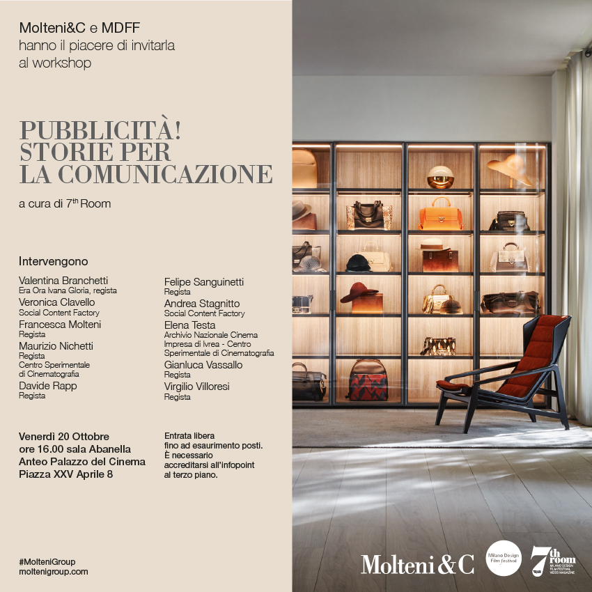 In questa occasione, Molteni&C si fa promotore del workshop PUBBLICITÀ! STORIE PER LA COMUNICAZIONE a cura di 7th Room
