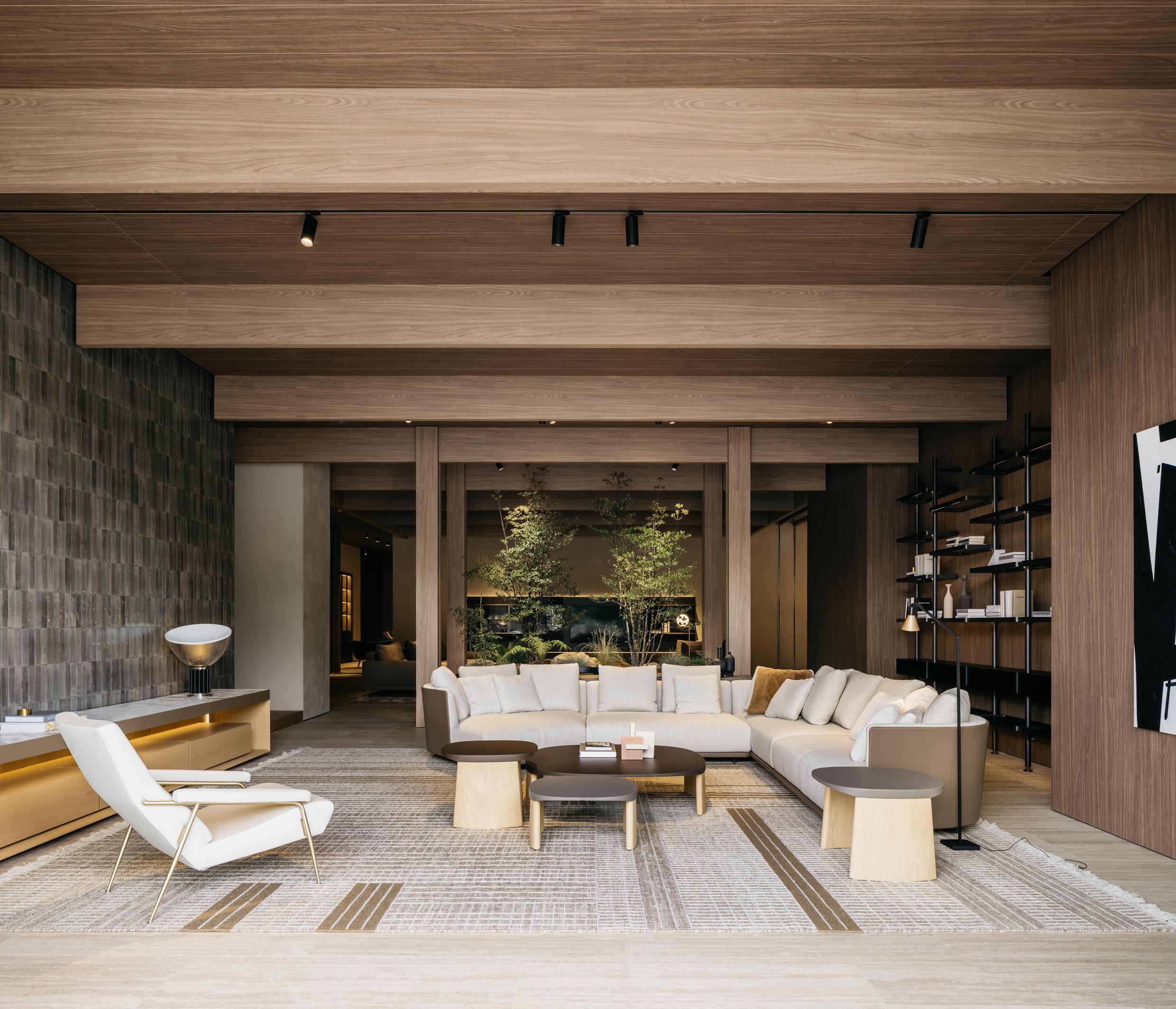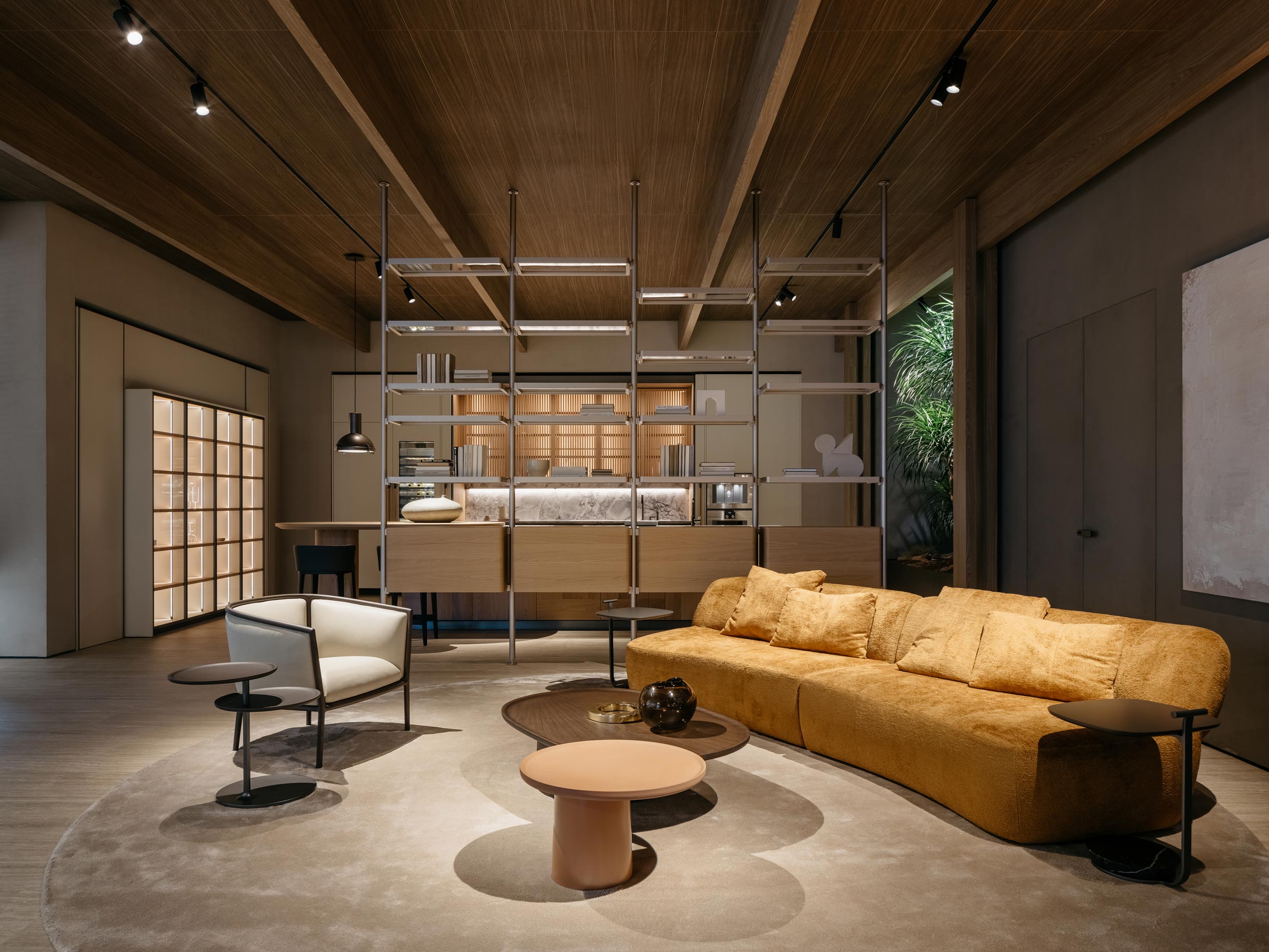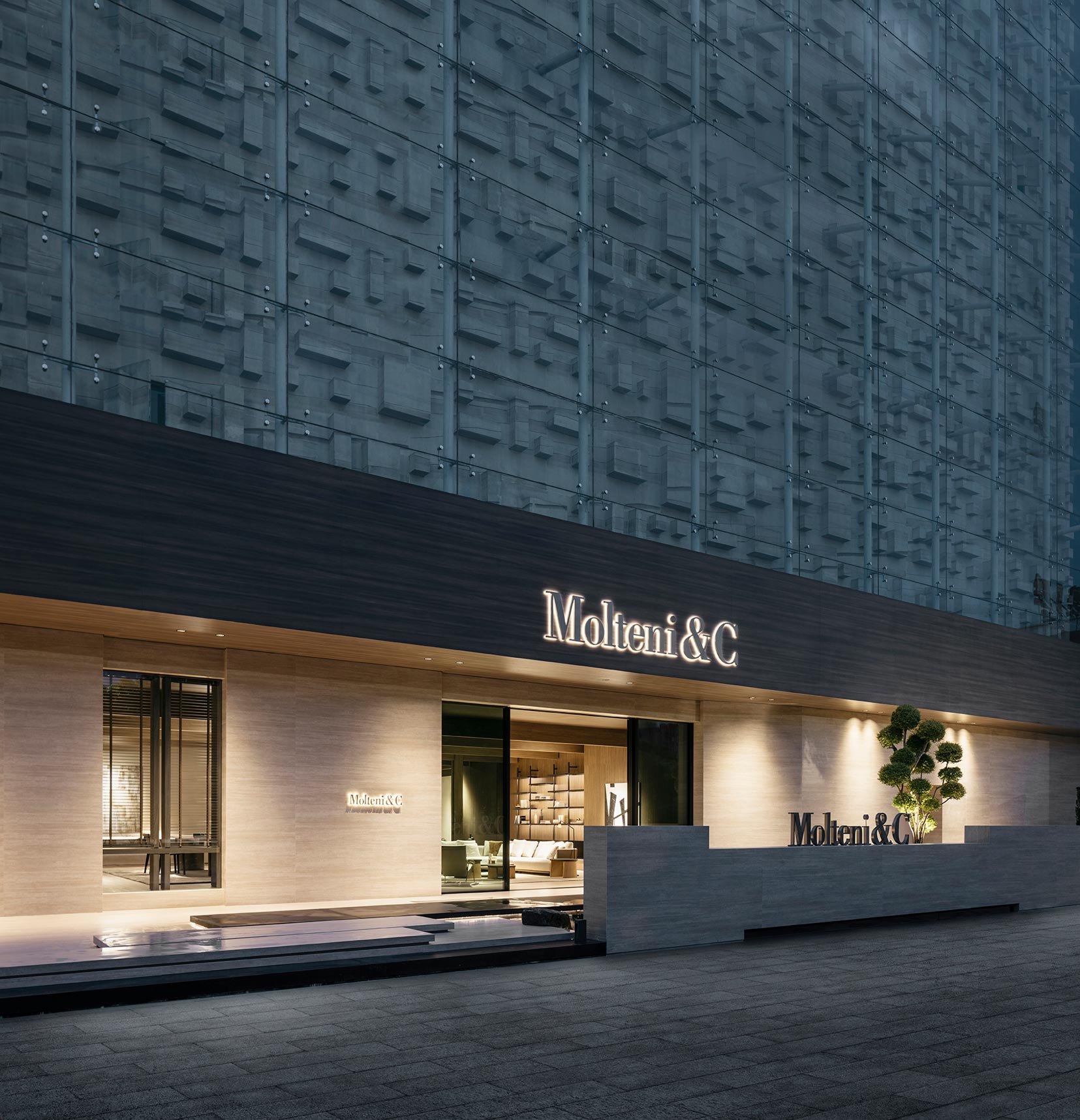 Il punto vendita cattura l’attenzione con la sua facciata immersa in un giardino di ispirazione zen, che invita i visitatori a entrare in un’oasi di pace e bellezza. Concepita in collaborazione con Yuemuju International Home, questa straordinaria impresa fonde in modo ideale l’eleganza senza tempo di Molteni&C e la grande esperienza di Yuemuju nel campo dei progetti residenziali di lusso.