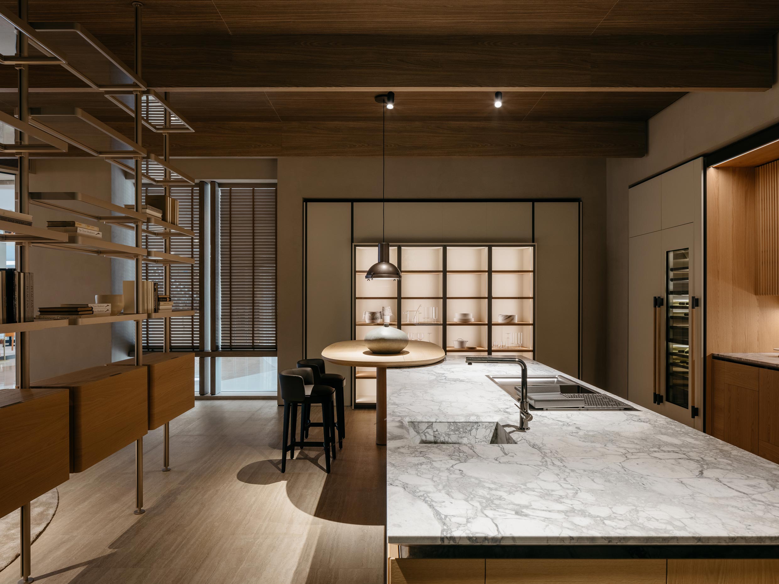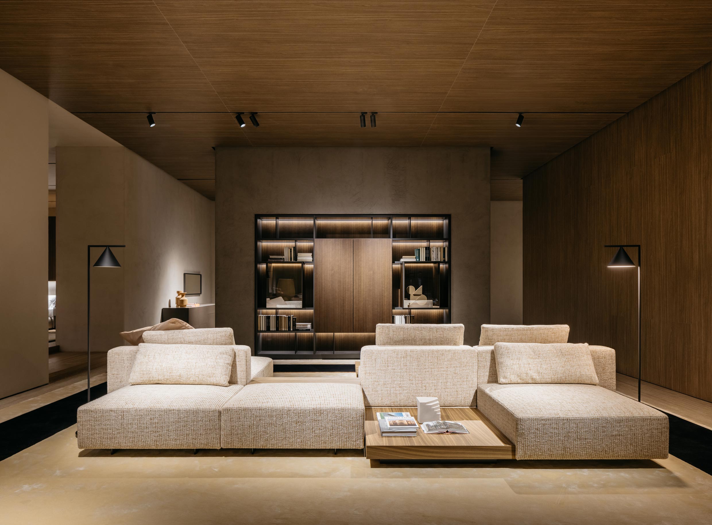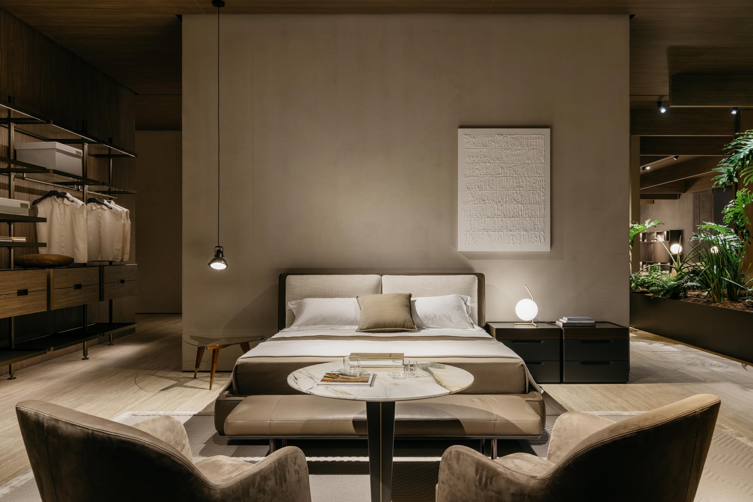 Il punto vendita cattura l’attenzione con la sua facciata immersa in un giardino di ispirazione zen, che invita i visitatori a entrare in un’oasi di pace e bellezza. Concepita in collaborazione con Yuemuju International Home, questa straordinaria impresa fonde in modo ideale l’eleganza senza tempo di Molteni&C e la grande esperienza di Yuemuju nel campo dei progetti residenziali di lusso.