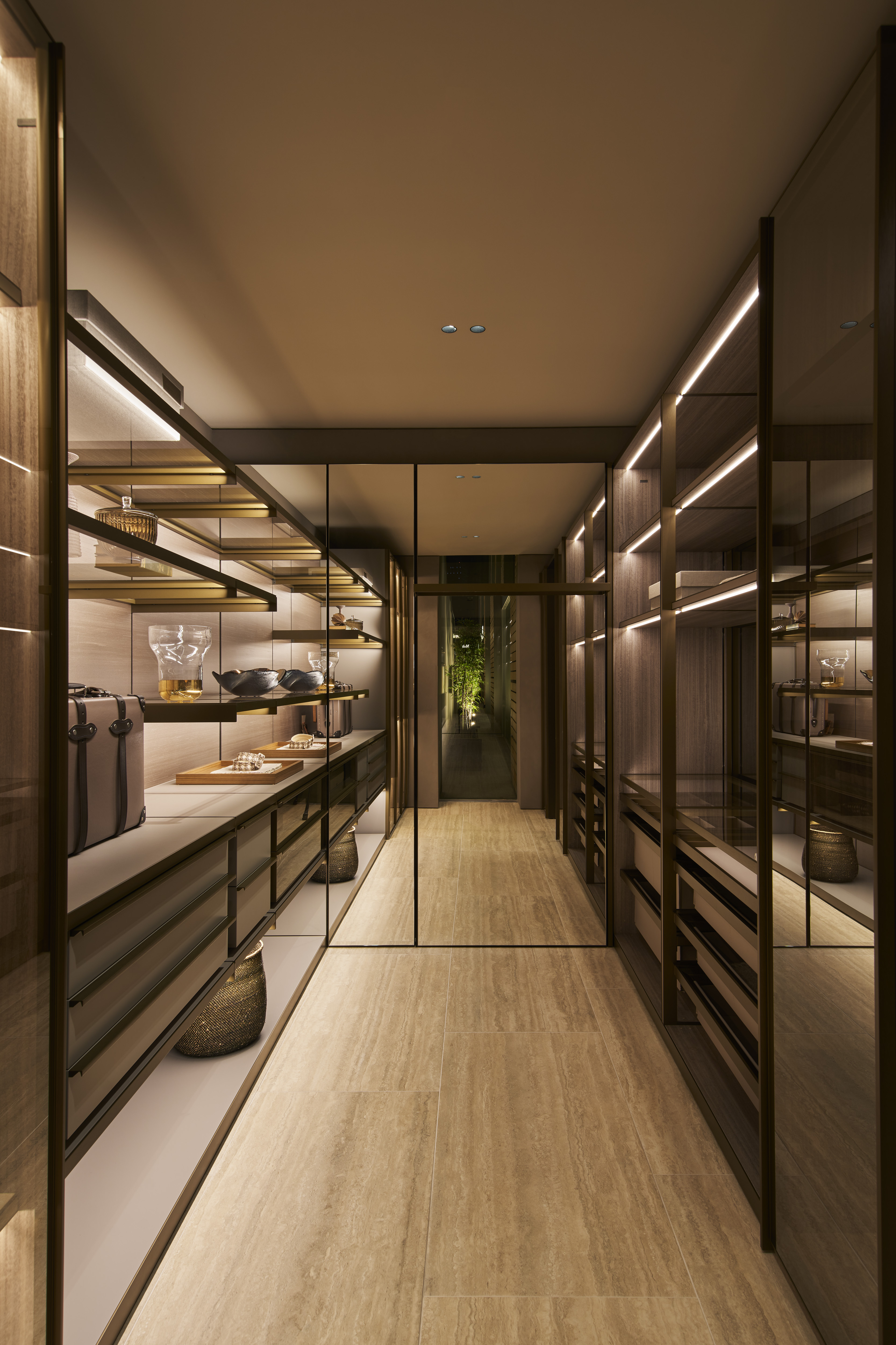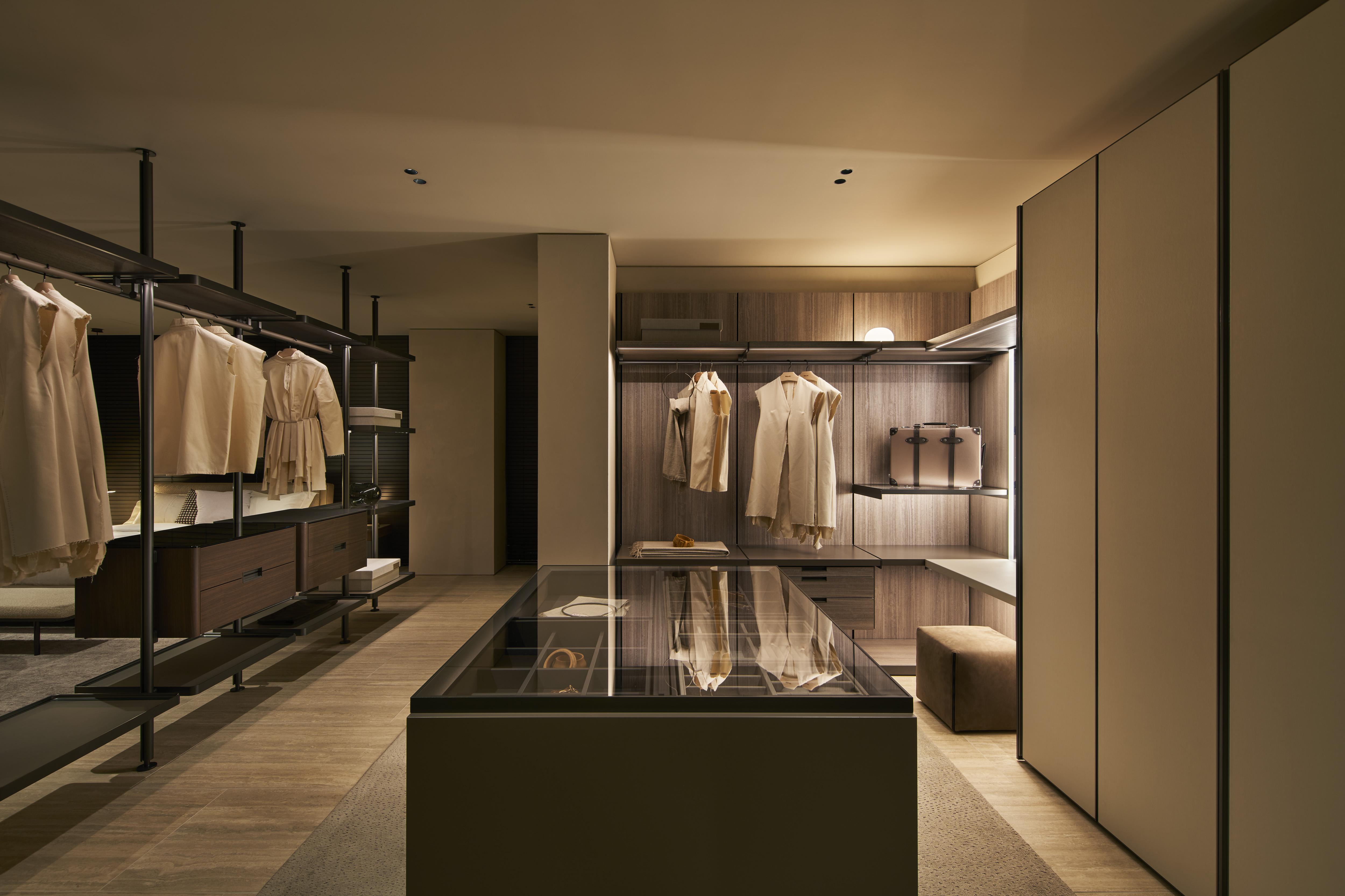 モルテーニ代表製品である「GLISS MASTER」と「MASTER DRESSING」で構成した機能的なワードローブ収納。