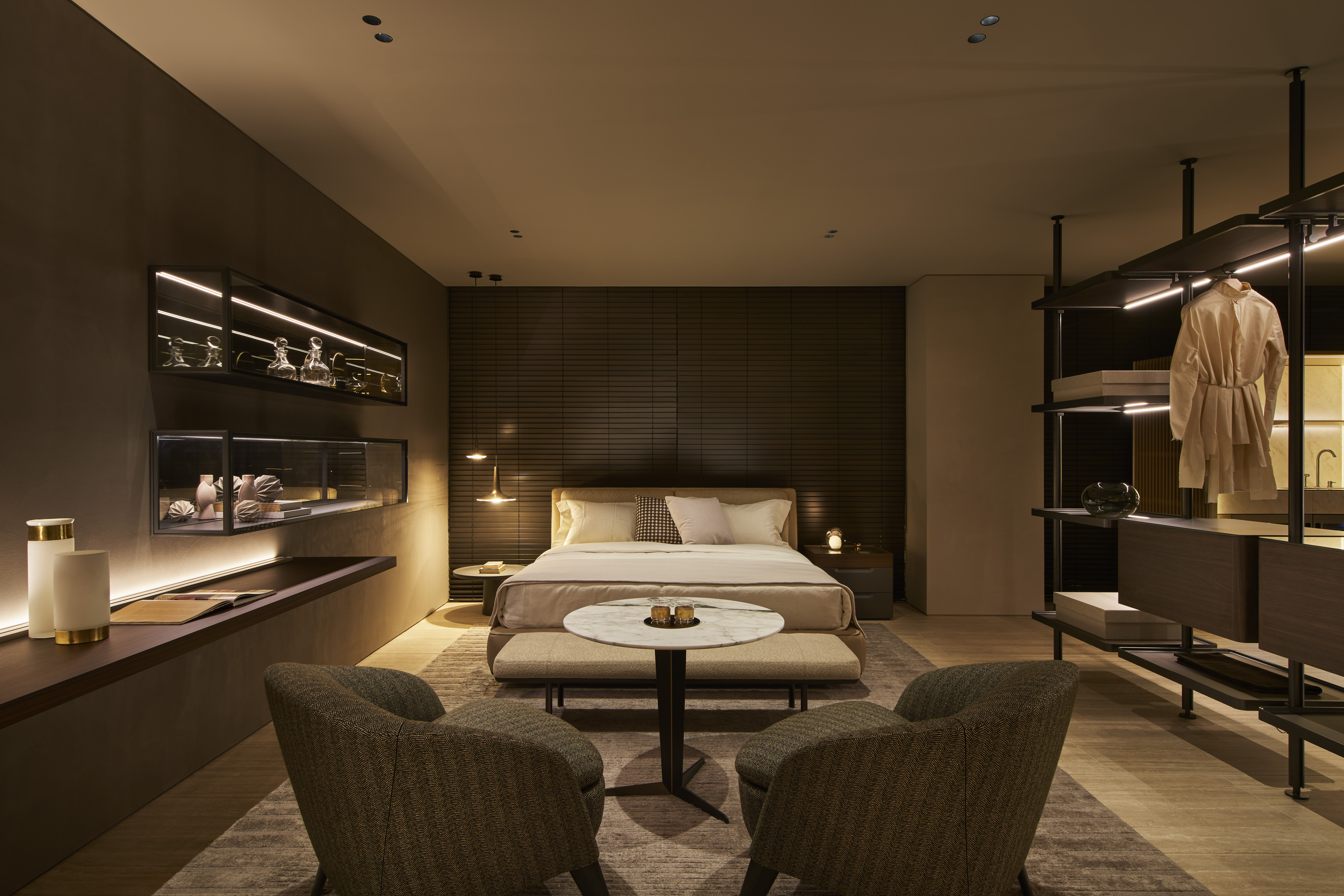 東京・南青山の旗艦店〈モルテーニ・ダーダ東京〉では、最新コレクションの国内発表発売に合わせて増床リニューアルを行いました。新たにオープンしたナイトショールームは、眠るだけではない情感豊かなベッドルームのしつらえと多彩なワードローブ収納をご覧いただけるエリアです。また従来のショールーム地下1階もムードを一新しアウトドア家具の展示をスタート。さらにオフィス機能を備えたラウンジも新設し、合計5つのエリアにわたってブランドの魅力を余すところなくご体感いただける施設へと生まれ変わりました。
