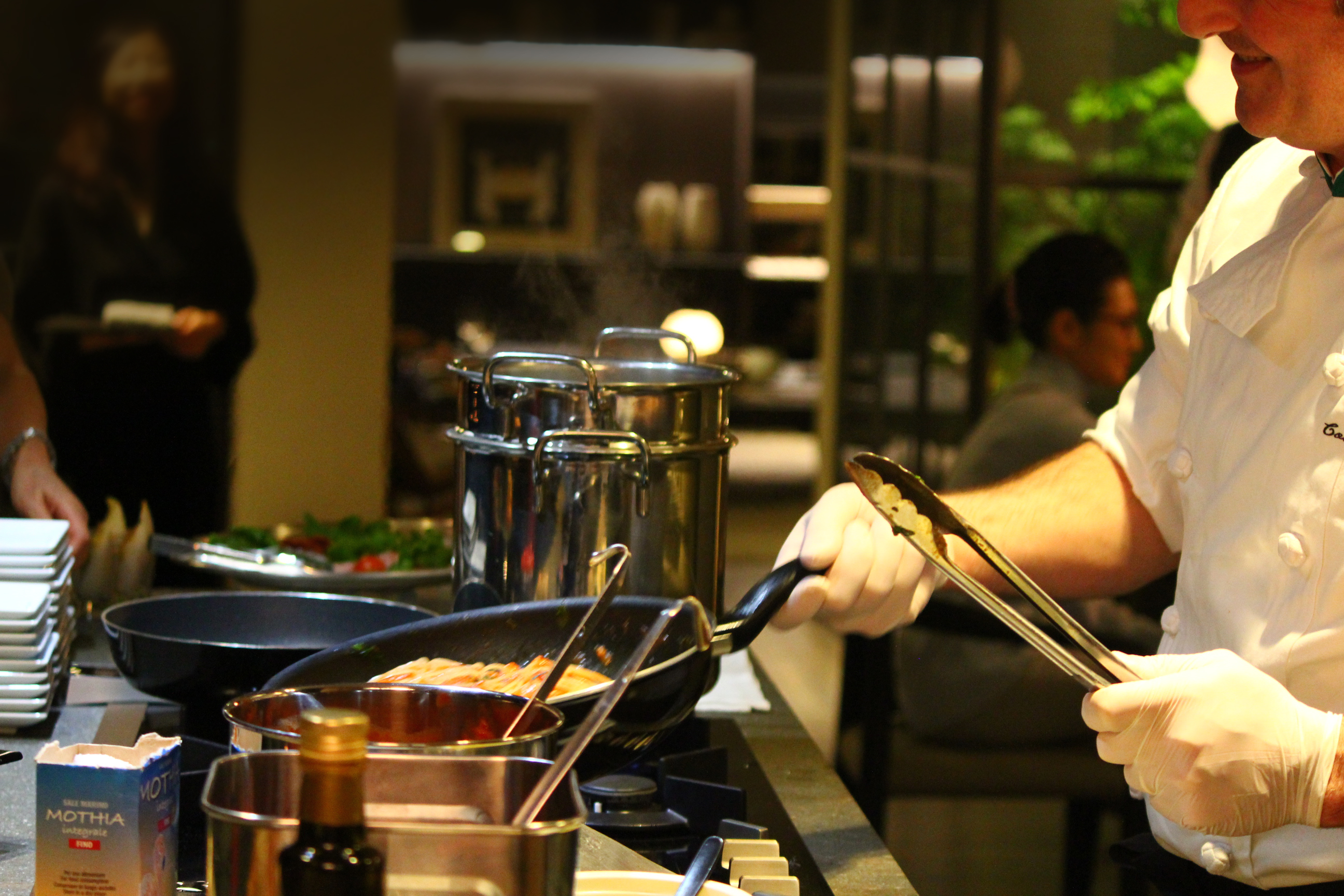 テラスに面した開放的なキッチンから、 麹町の人気イタリア料理店「Elio」 のシェフが各ワインに合わせたフィンガーフードをサーブしました。