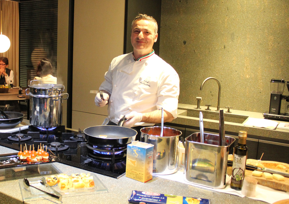 フード&ワインマガジン『ワイナート』とコラボレーションし、「スーパータスカン」 と呼ばれる最高級の品質と味わいを誇る赤ワインを中心に、トスカーナ州のワインを「Molteni&C HOME (モルテーニ・ホーム)」で、 シェフが提供するフィンガーフードとともに楽しむイベントを開催しました。 さらにイベントでは、イタリアワインに関する執筆等で広く活躍するジャーナリスト 宮嶋勲さんによるトークセミナーも開催。特別な夜のひとときとなりました。
