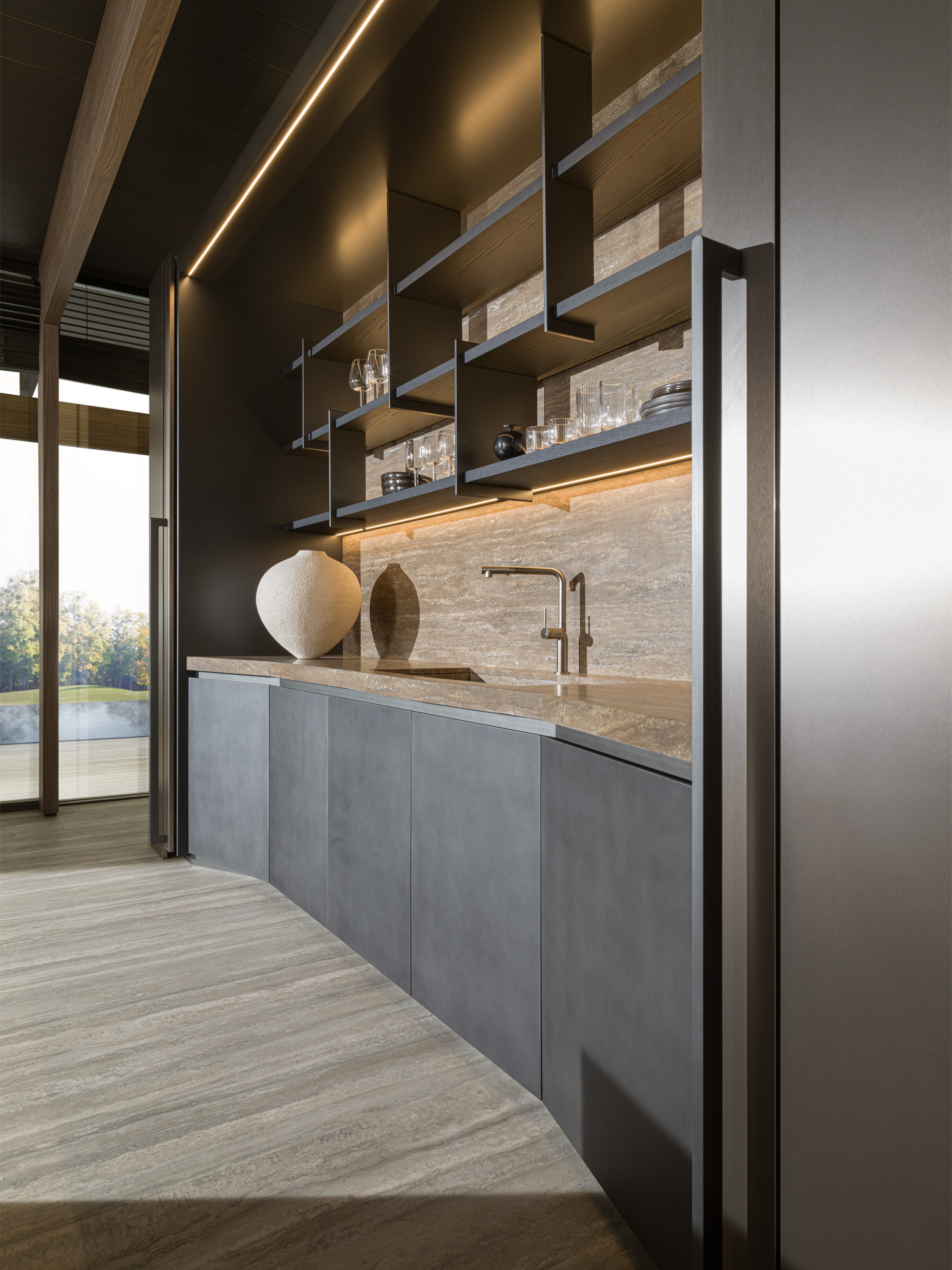堂々とした舞台には、相応の照明が必要です。棚に内蔵されたLED システムは、実用性を保証する設計であると同時に、エモーショナルな効果をもたらします。