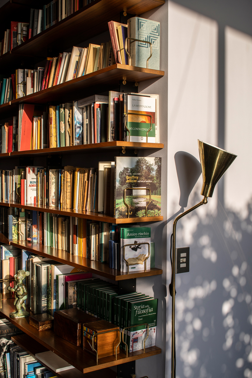 le librerie o le poltrone rivestite in panno. Teneva pochissimi oggetti e quadri, solo quelli che gli piacevano e che riteneva veramente belli. Per molti anni ha utilizzato i libri della collezione, le prime edizioni del Palladio, per fare da base alla televisione.