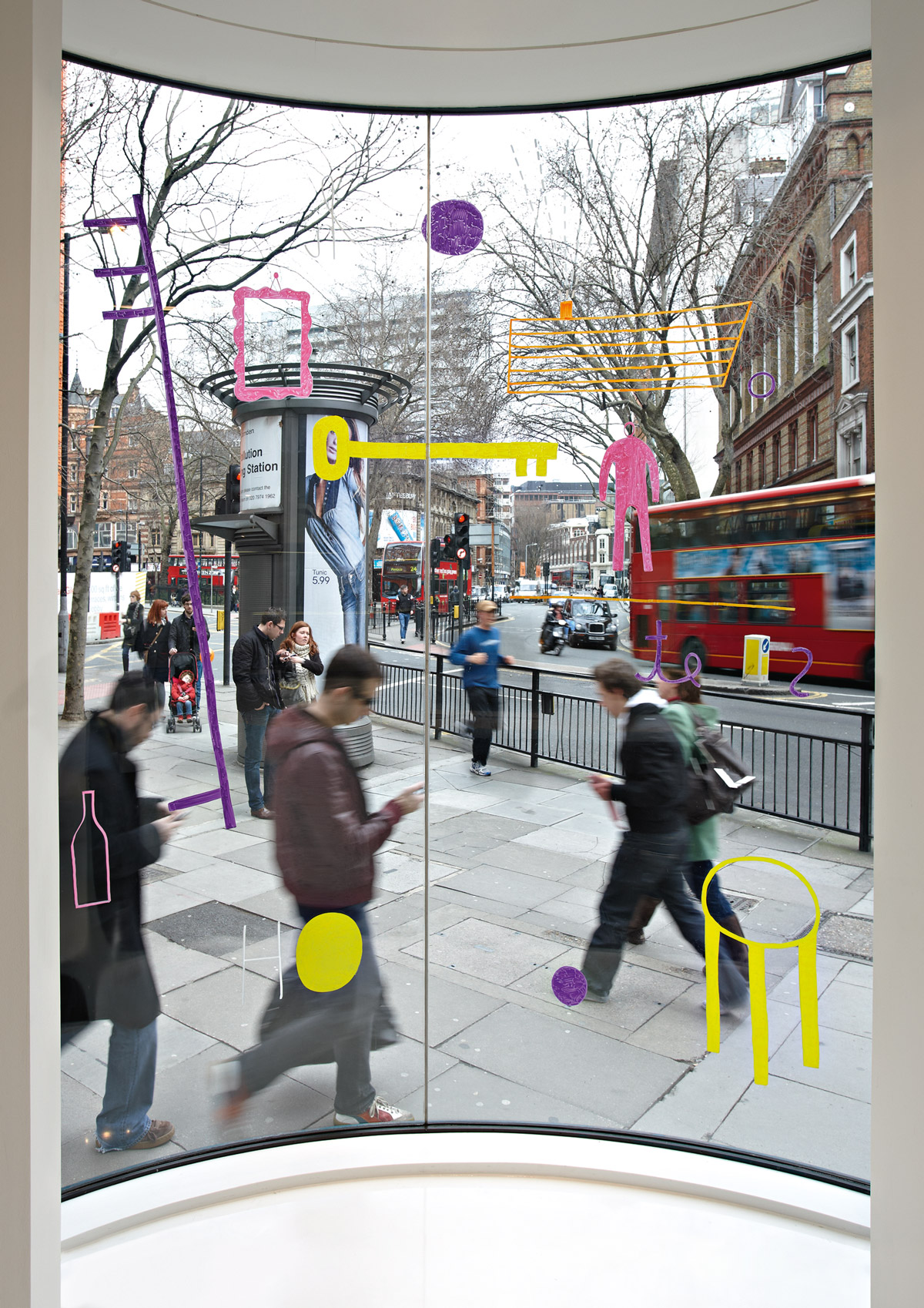 Città e continenti. La Vetrina con la performance di Miro e Olimpia Zagnoli, realizzata nel flagship store di Londra il 12 e il 13 marzo 2010 è l’azione di un racconto per immagini. Luogo di interazioni, rimandi e dialoghi che proseguono a Milano il 15 aprile, altro spazio, altra città, altre socialità. Il progetto, itinerante e trasversale, sposta Londra a Milano, Milano a New York, Londra a New York. Ovunque il segno di un Gruppo internazionale che parla la lingua del design, della comunicazione, dell’installazione.