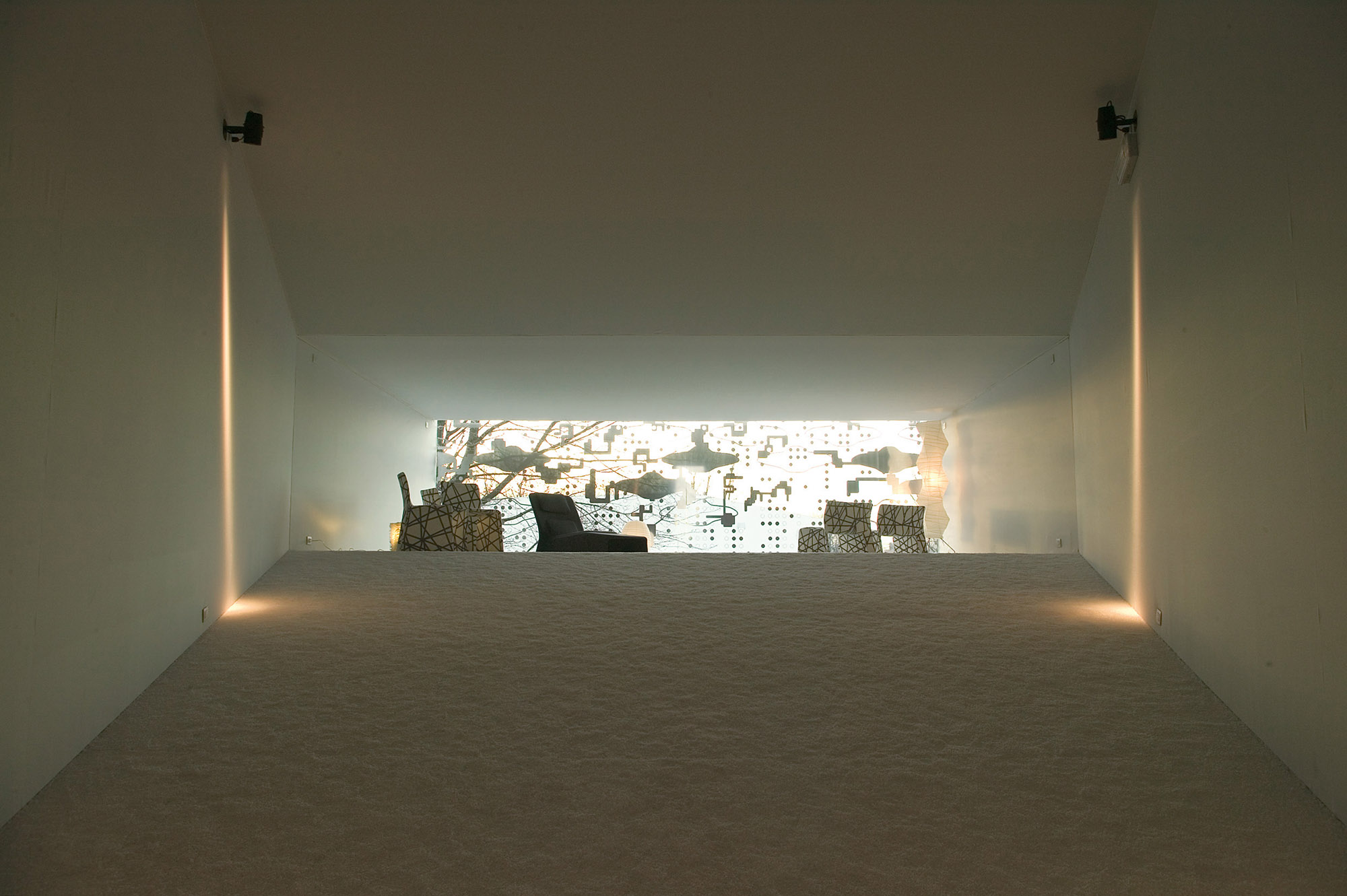 Today it stands in the park surrounding Molteni’s headquarters at Giussano, near Milano; it consists of an ascent and descent that seem to finish nowhere but really lead to a window over the surrounding greenery, as in certain Ambasz archirtecture. Entering it means taking an architectural promenade all the way to the top, where there is a viewing area, with chairs and chaises-longues.