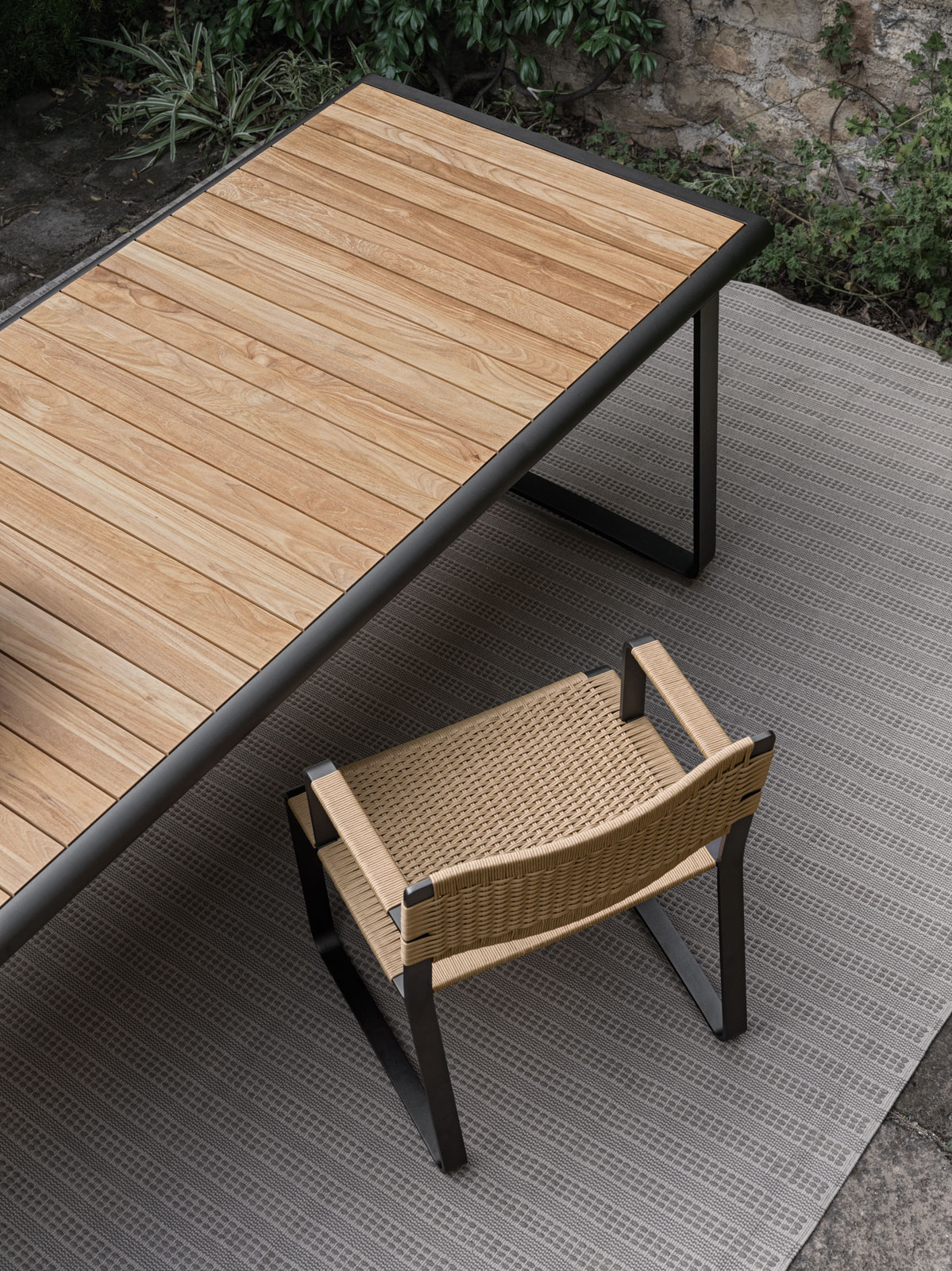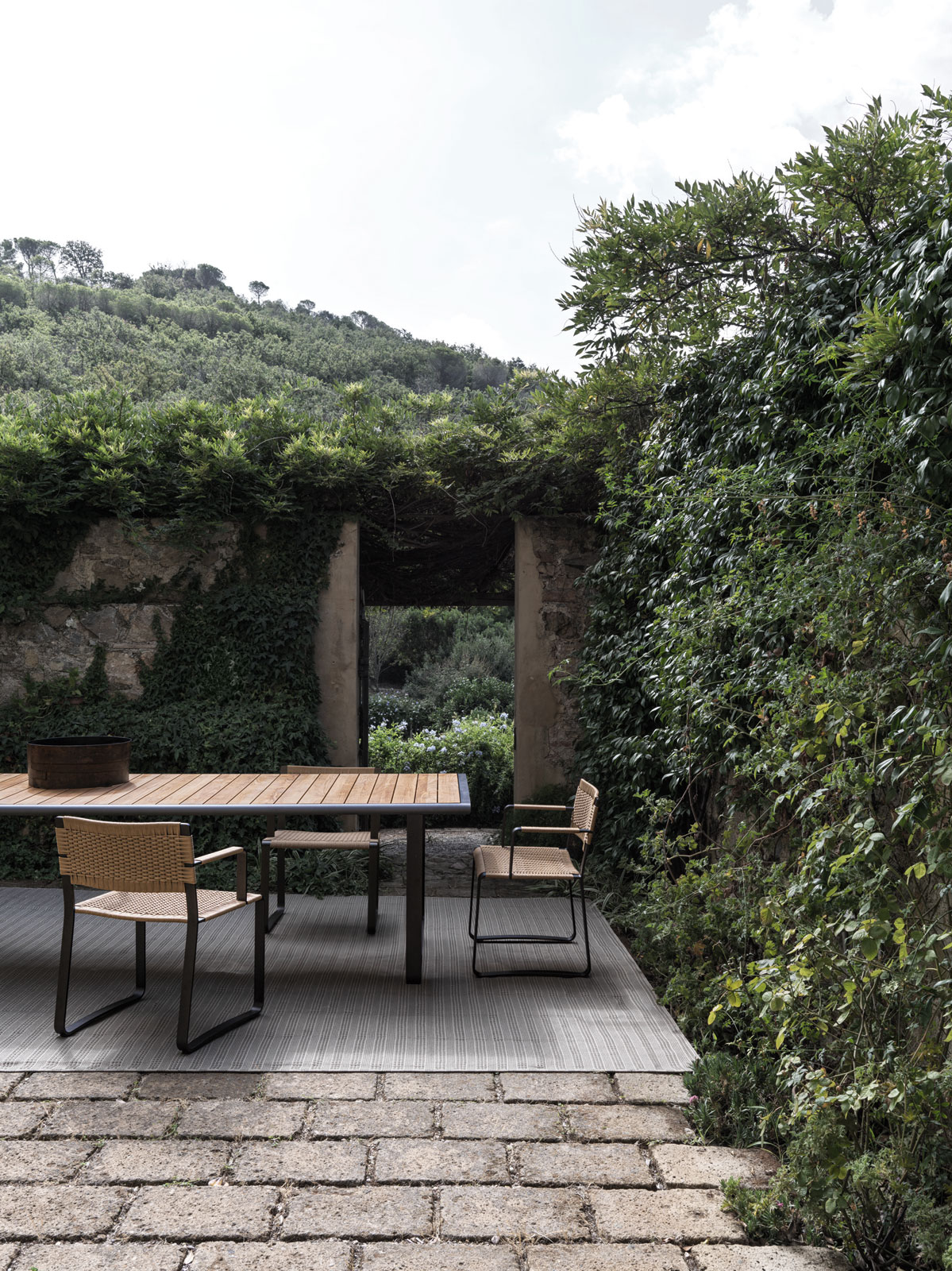 The Timeout Collection dining table interprets the archetype of outdoor tables with a slatted top for water drainage. Seating 6 or 8, it stands out for its carefully calibrated proportions and choice of materials that allow it to match both of Molteni&C's new outdoor collections.