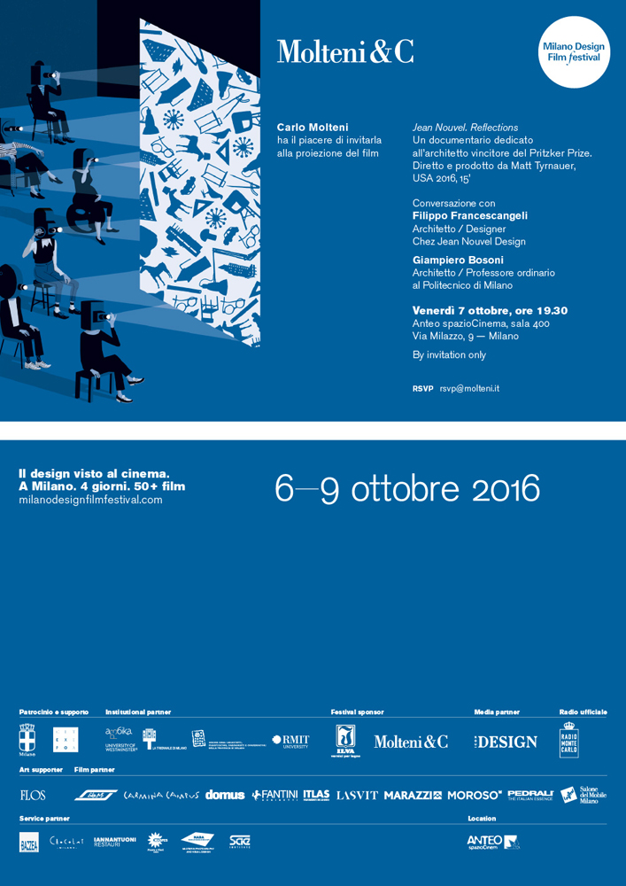 For the fourth consecutive year, Molteni&C is participating in the Milano Design Film Festival. This year the company is an official sponsor of the festival, which will be held at Anteo spazioCinema from 6 to 9 October 2016. The festival is also supported by the City of Milan.