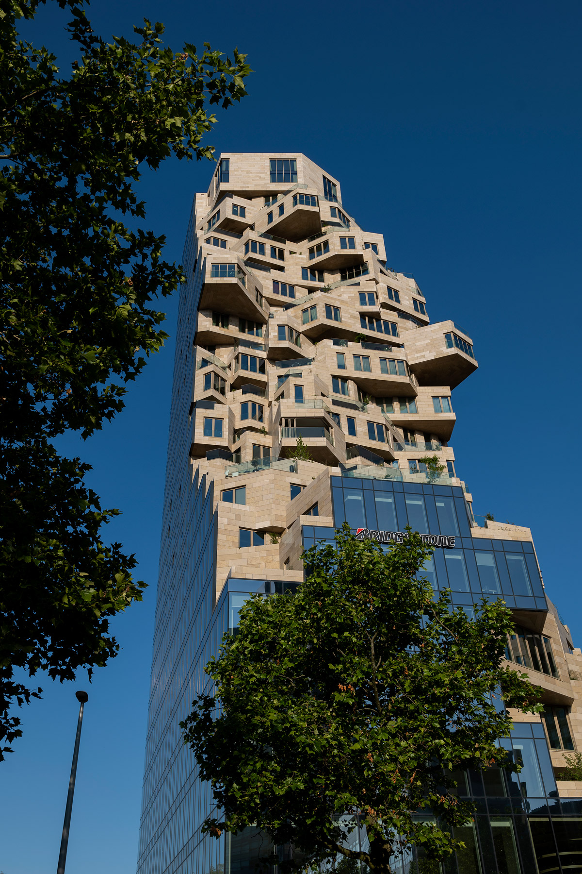 Valley is the Netherlands’ first “vertical village”, completed at the end of 2021. The project was conceived by Winy Maas, an architect renowned for his visionary towns of the future. The building features an irregular facade articulated over green terraces designed by the famous landscape architect Piet Oudolf and extends over a surface of over 75.000m2 including offices, restaurants, luxury apartments, a museum, as well as a vertical public park.