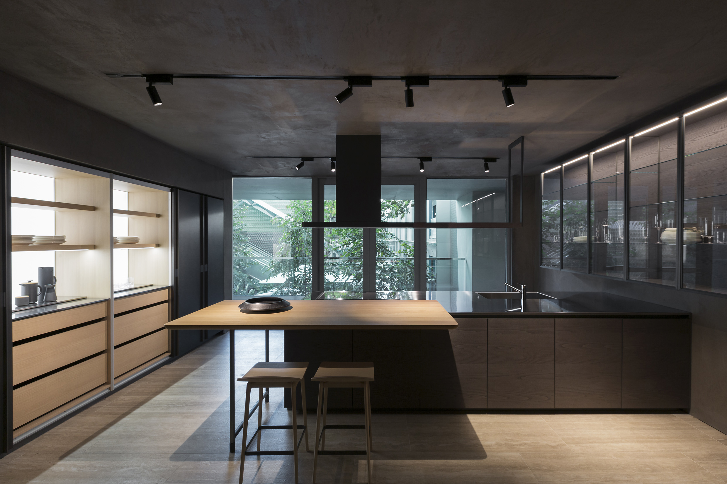 The new high-impact scenic space enhances the products of the collections designed by Vincent Van Duysen, Rodolfo Dordoni, Ron Gilad and Patricia Urquiola, amongst others. The night spaces feature a series of Ribbon and Anton beds with an elegant Master Dressing wardrobe, Molteni&C’s exclusive walk-in wardrobe design.