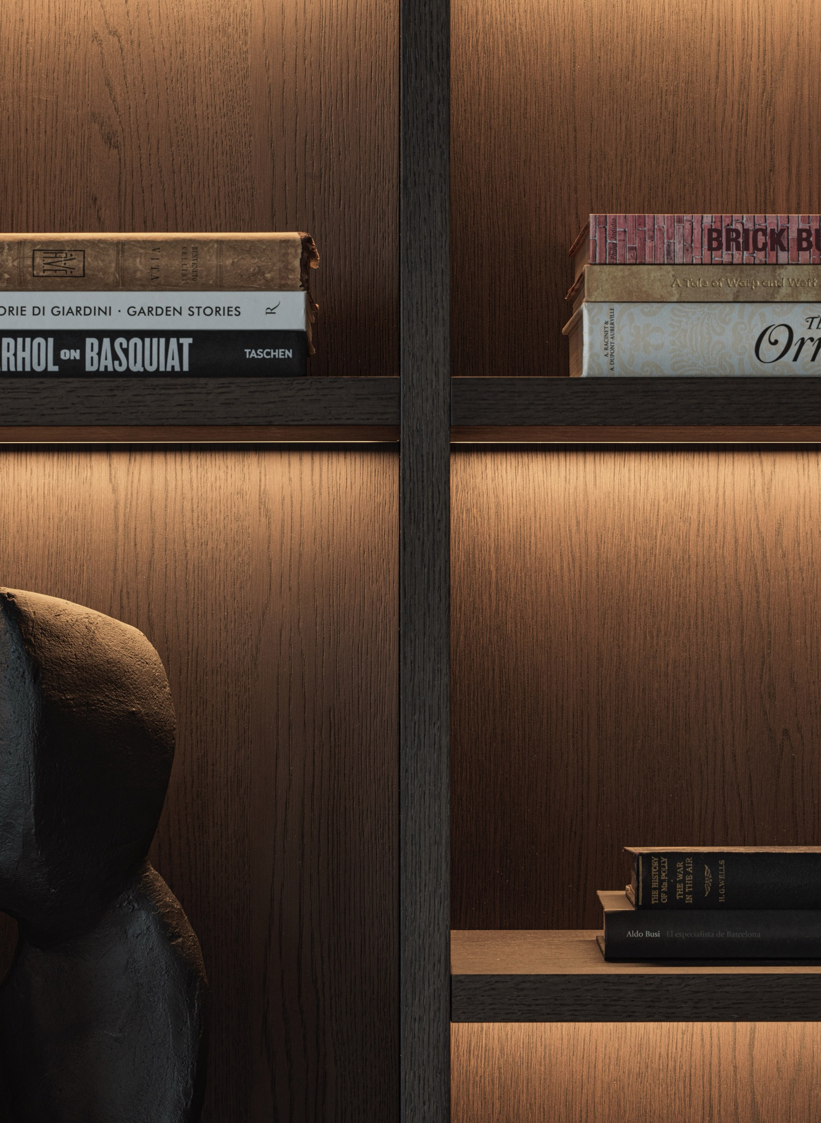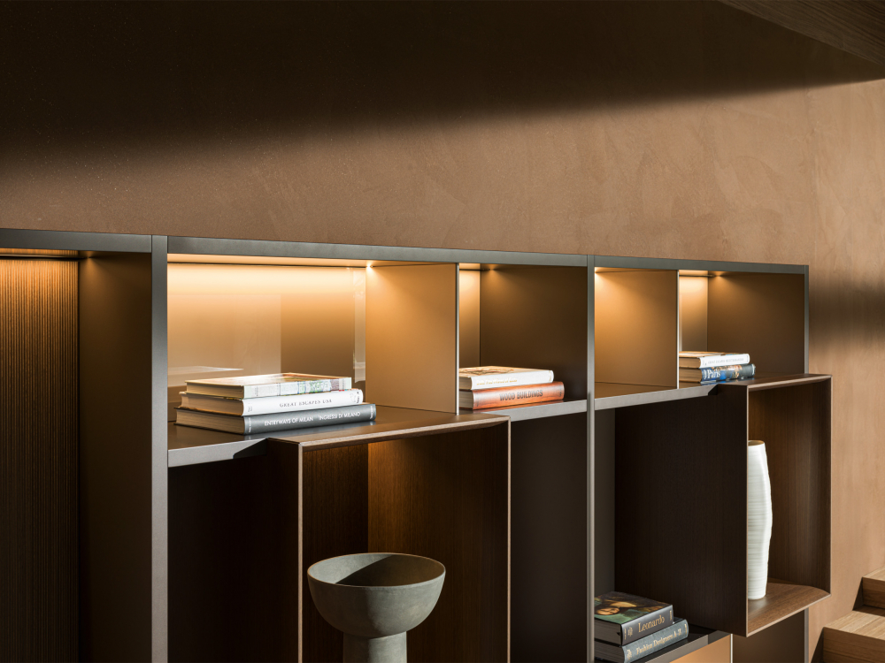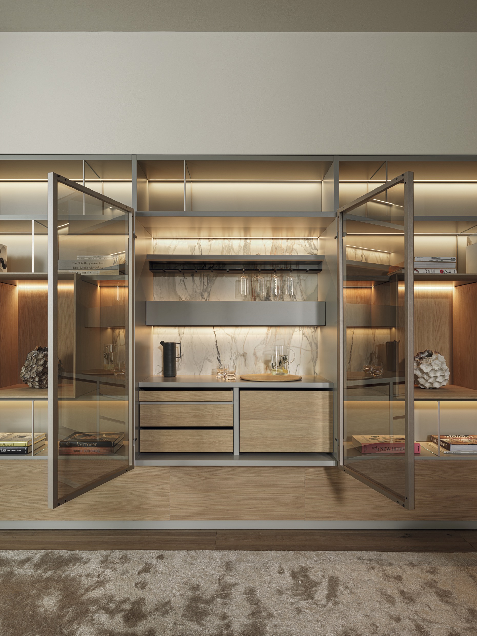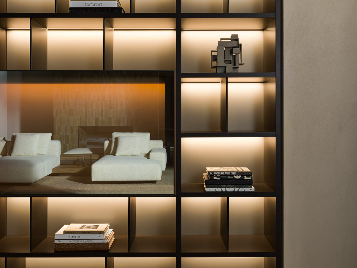 The 505 UP system, a hallmark in Molteni&C's range of modular furniture for living areas, continues its evolution to cater to contemporary lifestyle demands. Born not only as a project for furniture but also for architecture, it creates space and plays with geometries reminiscent of buildings in a city.