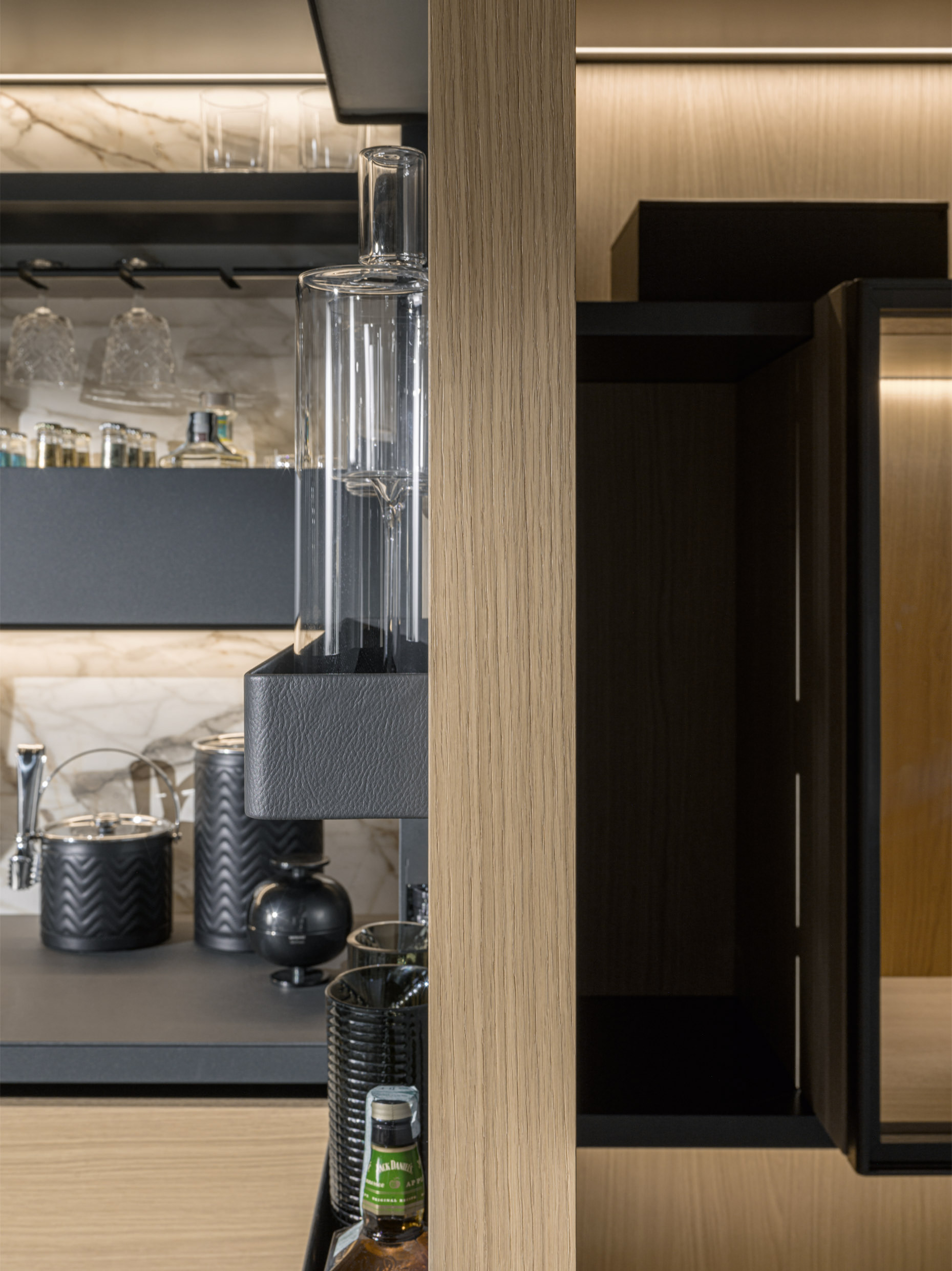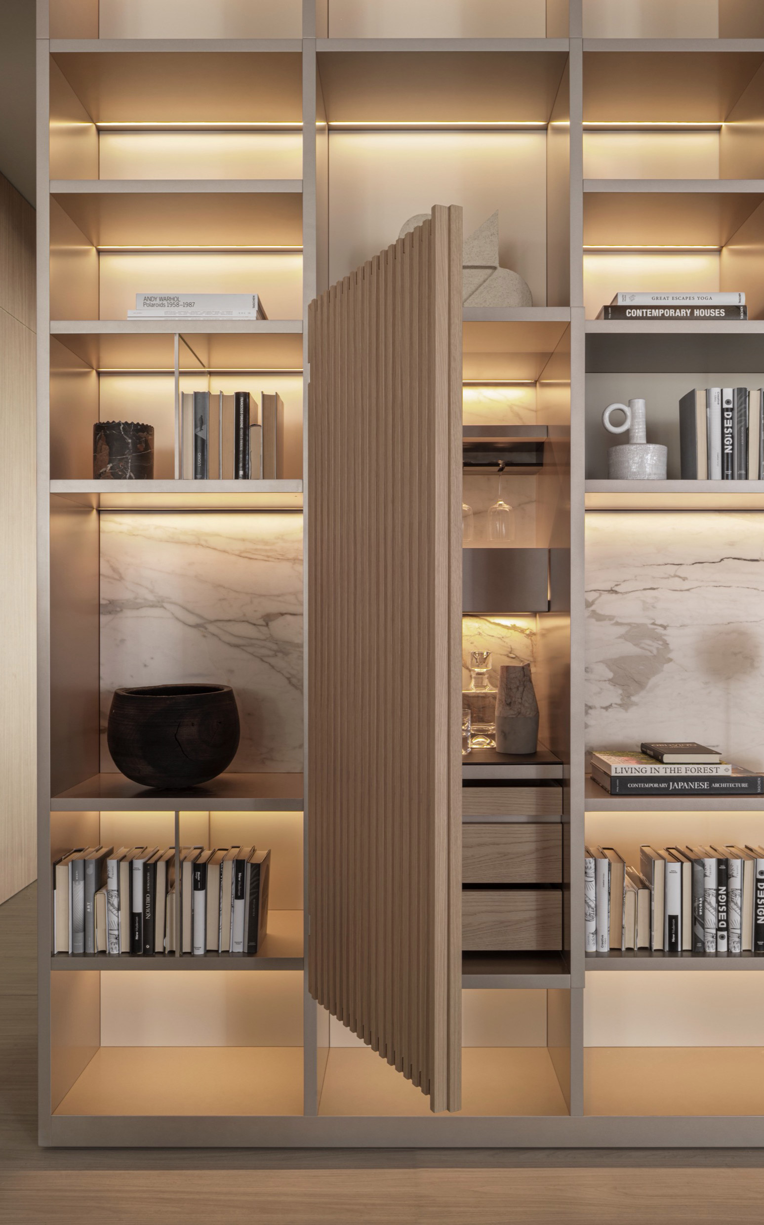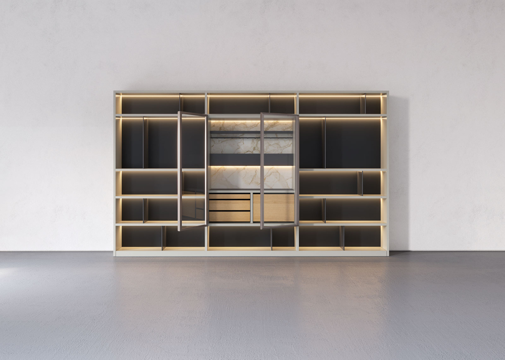 The 505 UP system, a hallmark in Molteni&C's range of modular furniture for living areas, continues its evolution to cater to contemporary lifestyle demands. Born not only as a project for furniture but also for architecture, it creates space and plays with geometries reminiscent of buildings in a city.