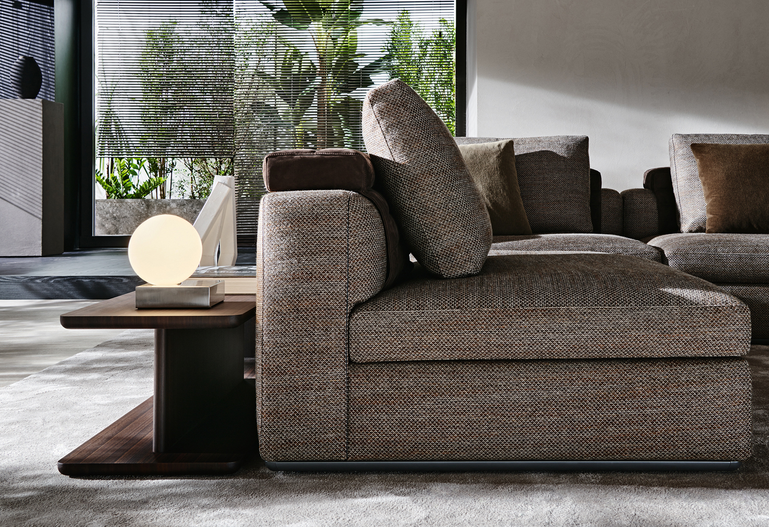 The base is not just a simple passe-partout, but the frame of the rounded profiles that sinuously accompanies the shape of the Pewter finishing on the floor, raising the seating and providing a floating and extremely lightweight effect. A complete and calibrated collection with perfect aesthetic balance, refinement and versatility. Albert can be upholstered in textiles or leathers chosen from the rich and varied Molteni&C collection.