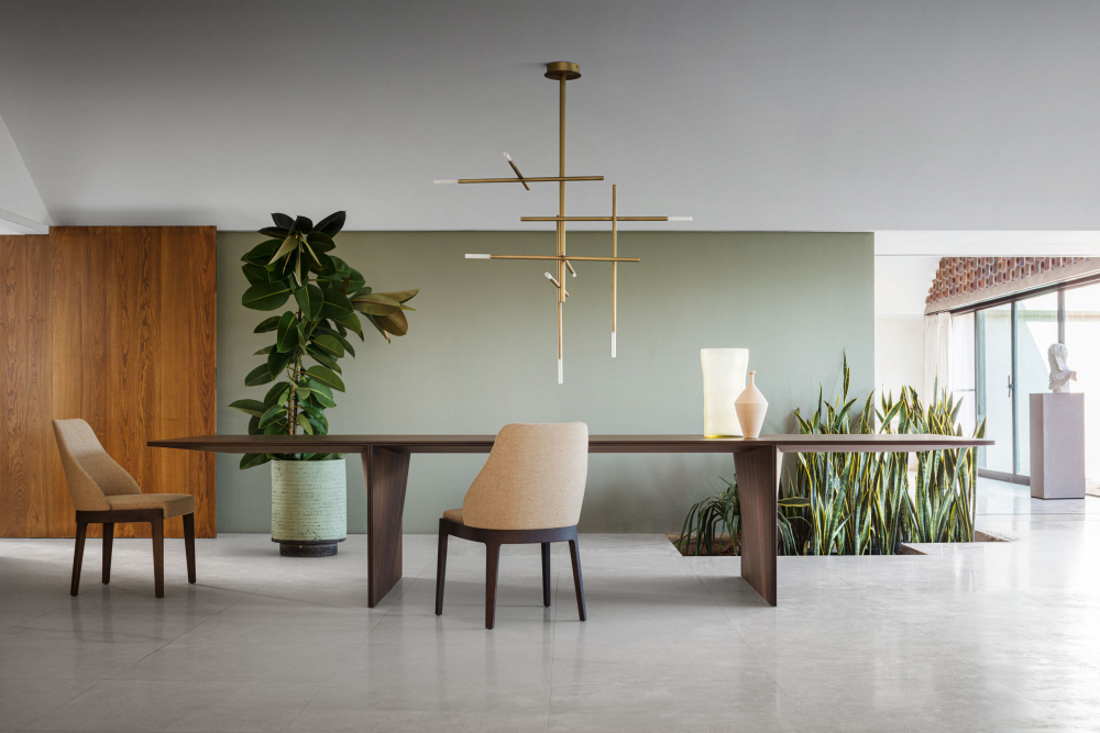Foster + Partners and Molteni have had a long and fruitful relationship that began with the design of the Still sofa in 2006. The practice also designed a range of office furniture called ‘Elements’ for UniFor, Molteni’s sister company. Ava follows a natural progression from the earlier design of the UniFor Elements metal conference table to create a timber dining table.