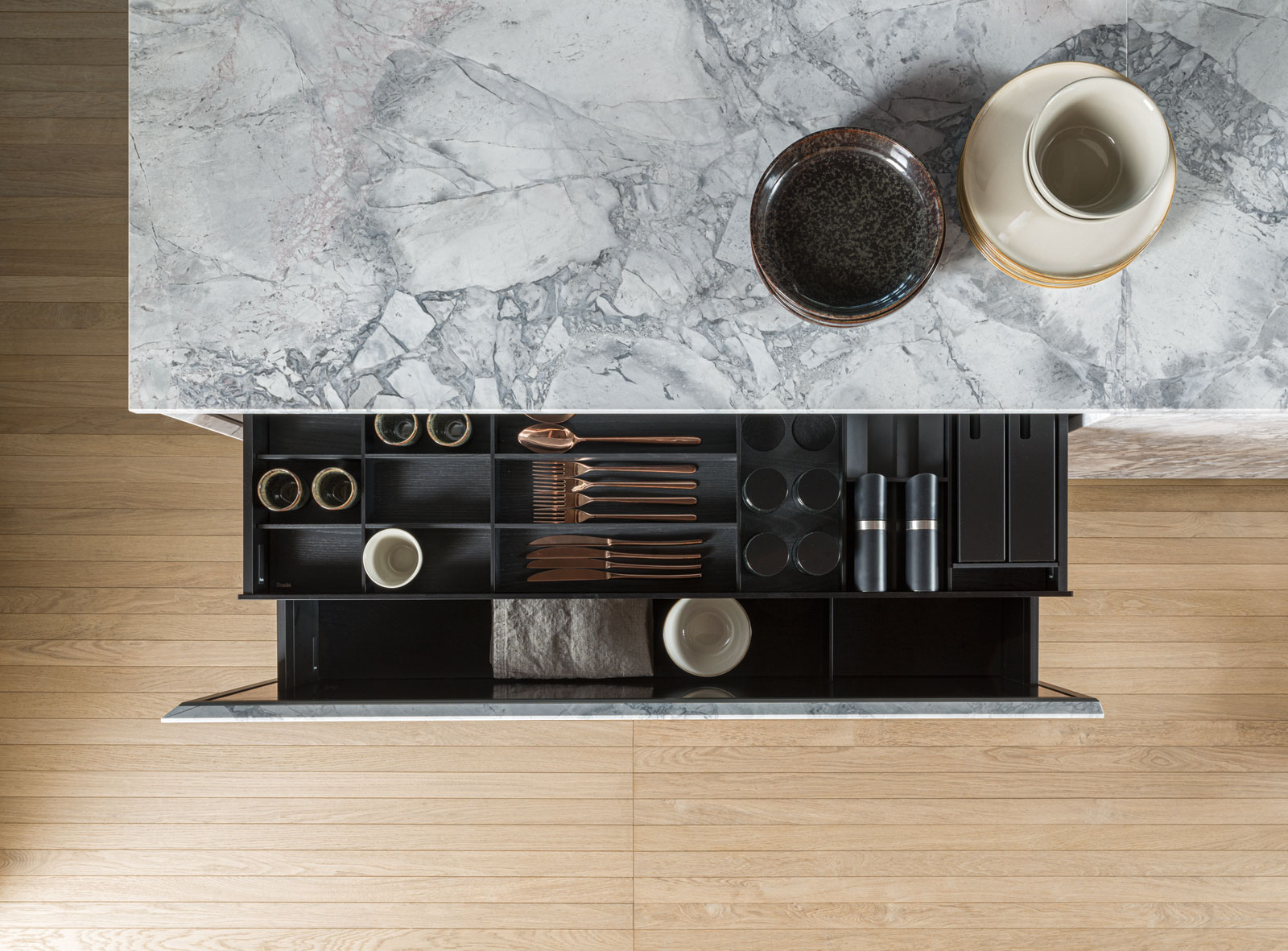 All the elements of the series are made with a base of black MDF in paste, veneered with wood essences, while the dividing elements are in wood solid wood or anodized or painted aluminum.All the elements of the series are made with a base of black MDF in paste, veneered with wood essences, while the dividing elements are in wood solid wood or anodized or painted aluminum.
