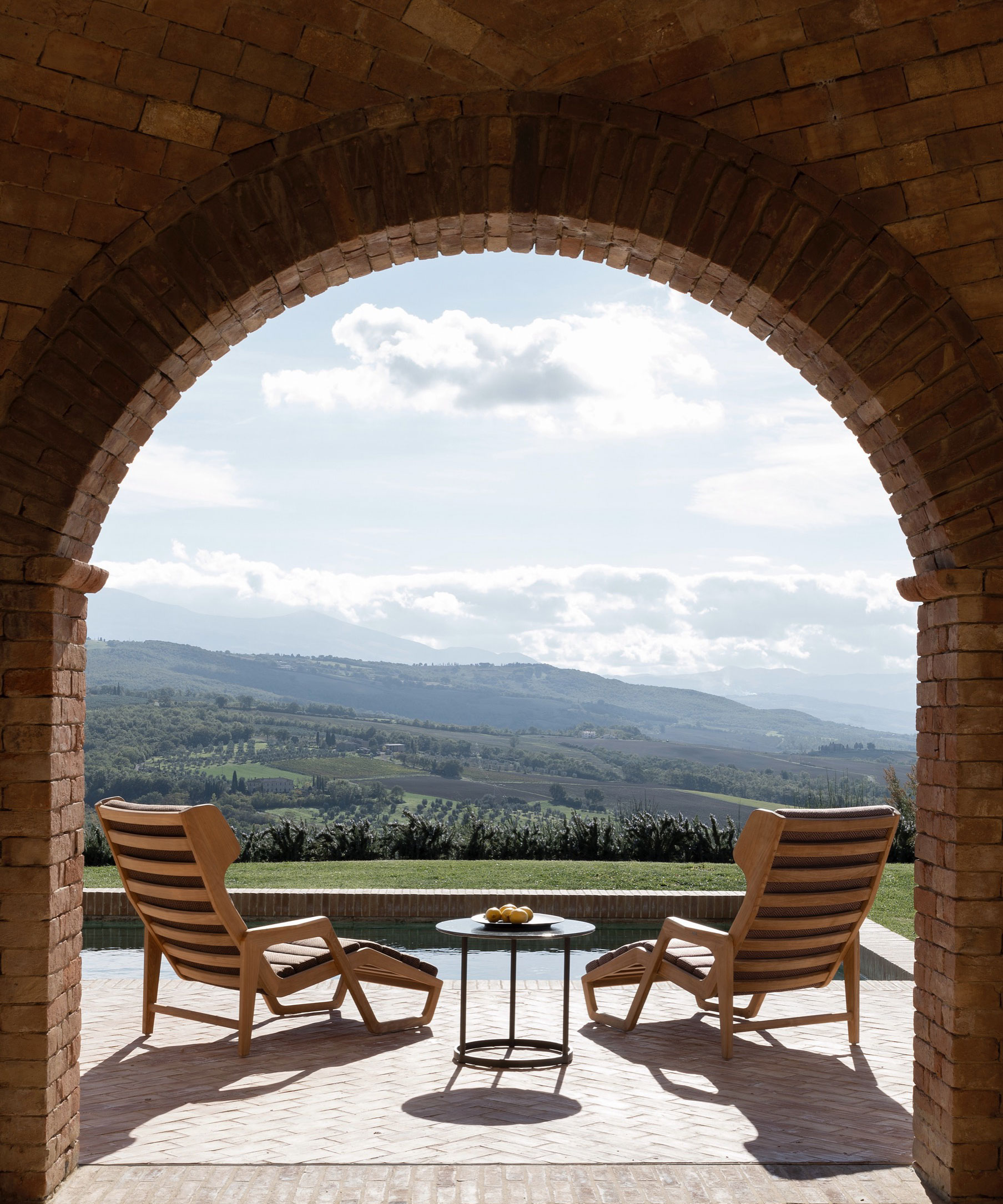 The contours of our chaise longue are characterised by two distinctive features: the first is the continuous line of the side design that unites the different parts (backrest, seat, armrest, footrest) in a single stroke, marking the elongated profile of the armchair in accordance with the Pontian principle.