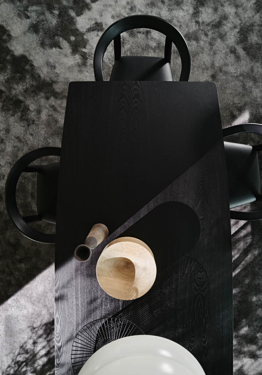 Originally made of solid ash with bronze ferrules, it is now also available in a darker-toned wood such as Black Stained Ash. In addition to its original dimensions, the D.859.1 is available in two smaller version that faithfully reproduce the harmony and proportions of the original design.