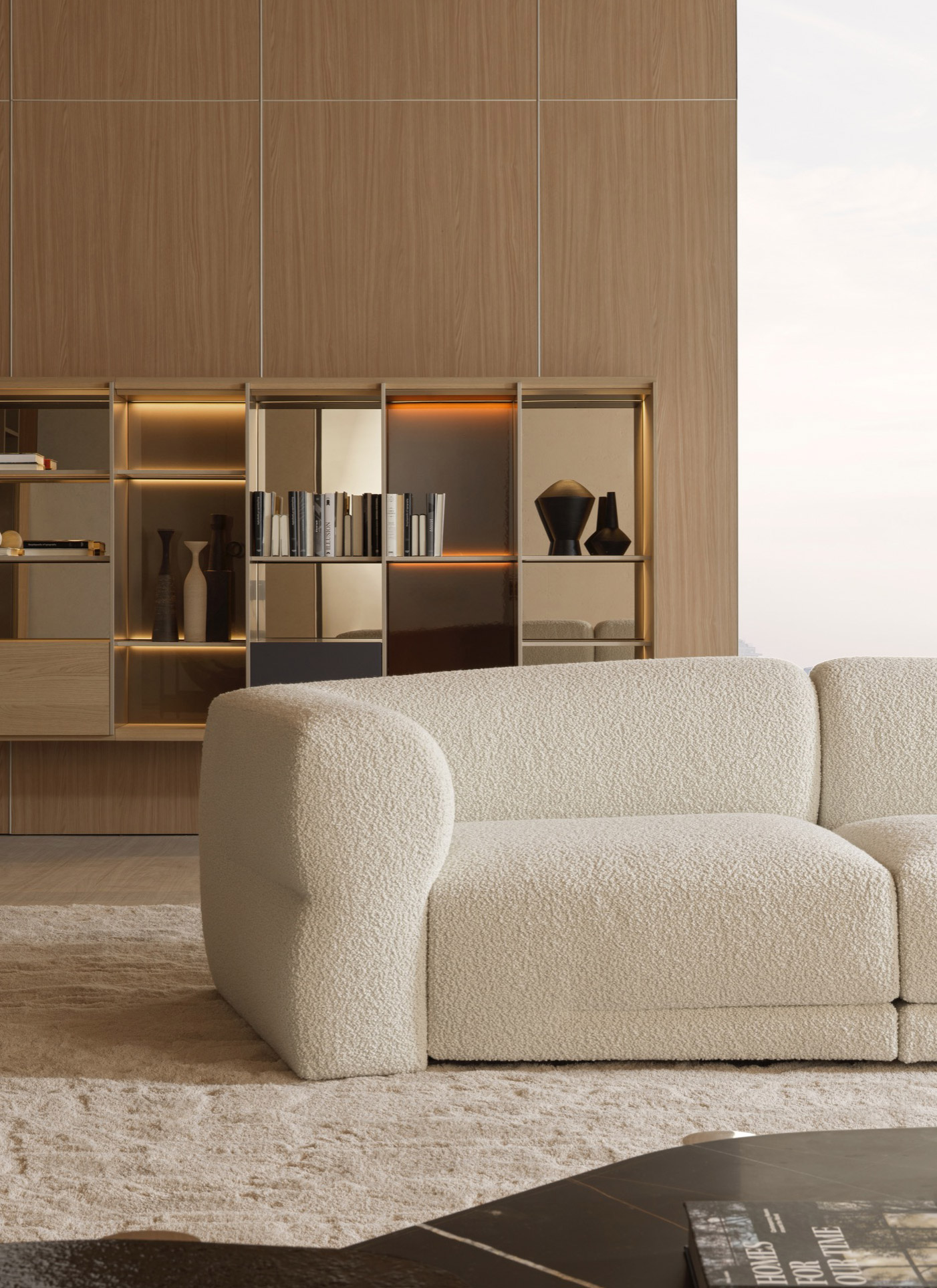 Crafted with precision and available in a curated selection of fabrics and leathers from the Molteni&C collection, Emile is a sculptural sofa designed for spaces that embrace both movement and tranquility.