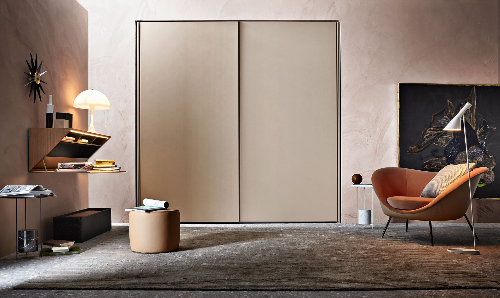 A Filo stands our for its invisible handle set into the door structure. A Filo makes it possible to create solutions with hinged, sliding or flush doors in glass and wood finish. Handles are always full height, available in the finishes matt and glossy lacquer.