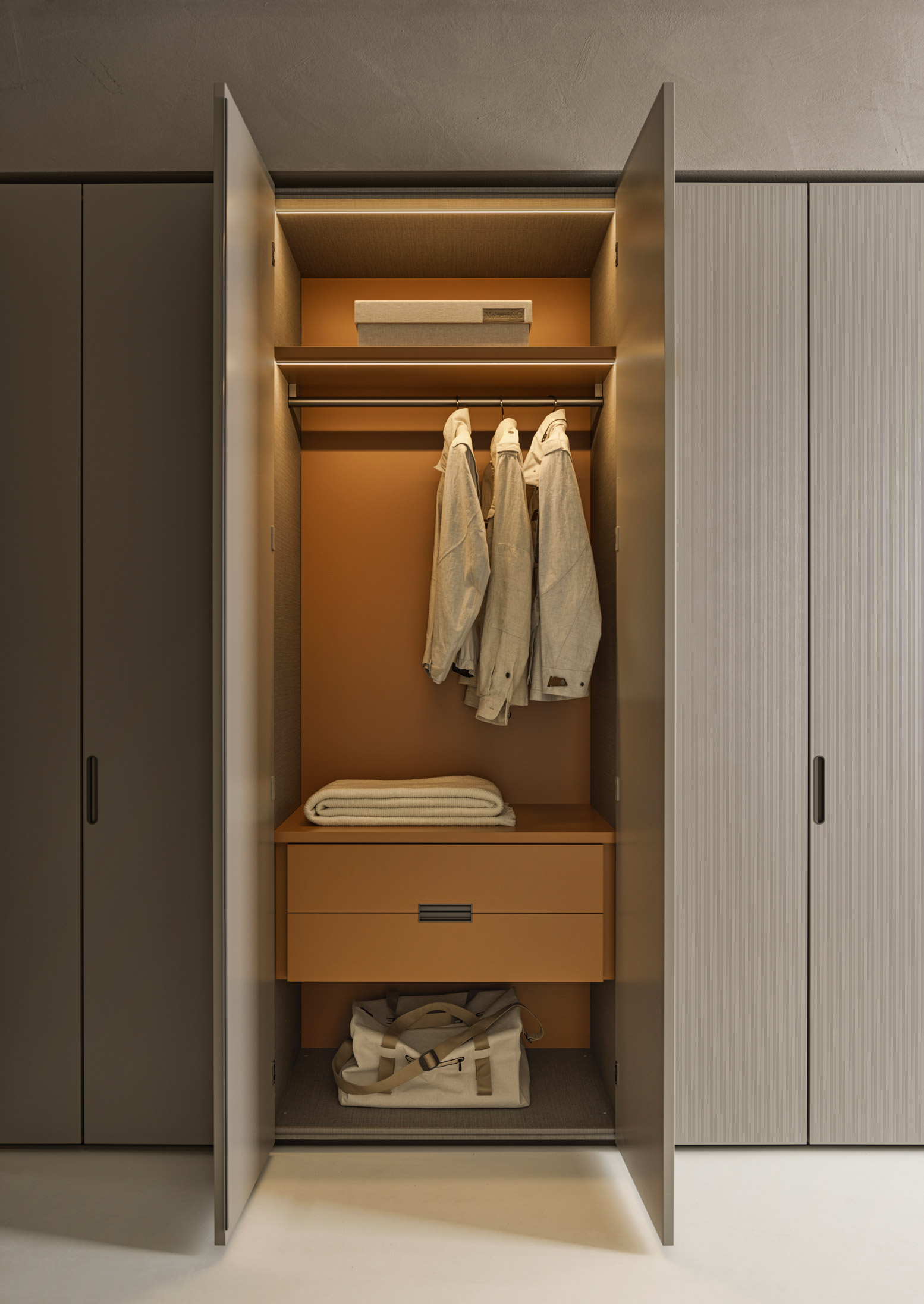 Designed to provide elegant beauty and an intuitive experience, Linear is an innovative wardrobe door by Vincent Van Duysen that complements the Gliss Master system. Its high-tech features set it apart from other wardrobe systems, such as its unique hidden hinges, and new cushioned closures.