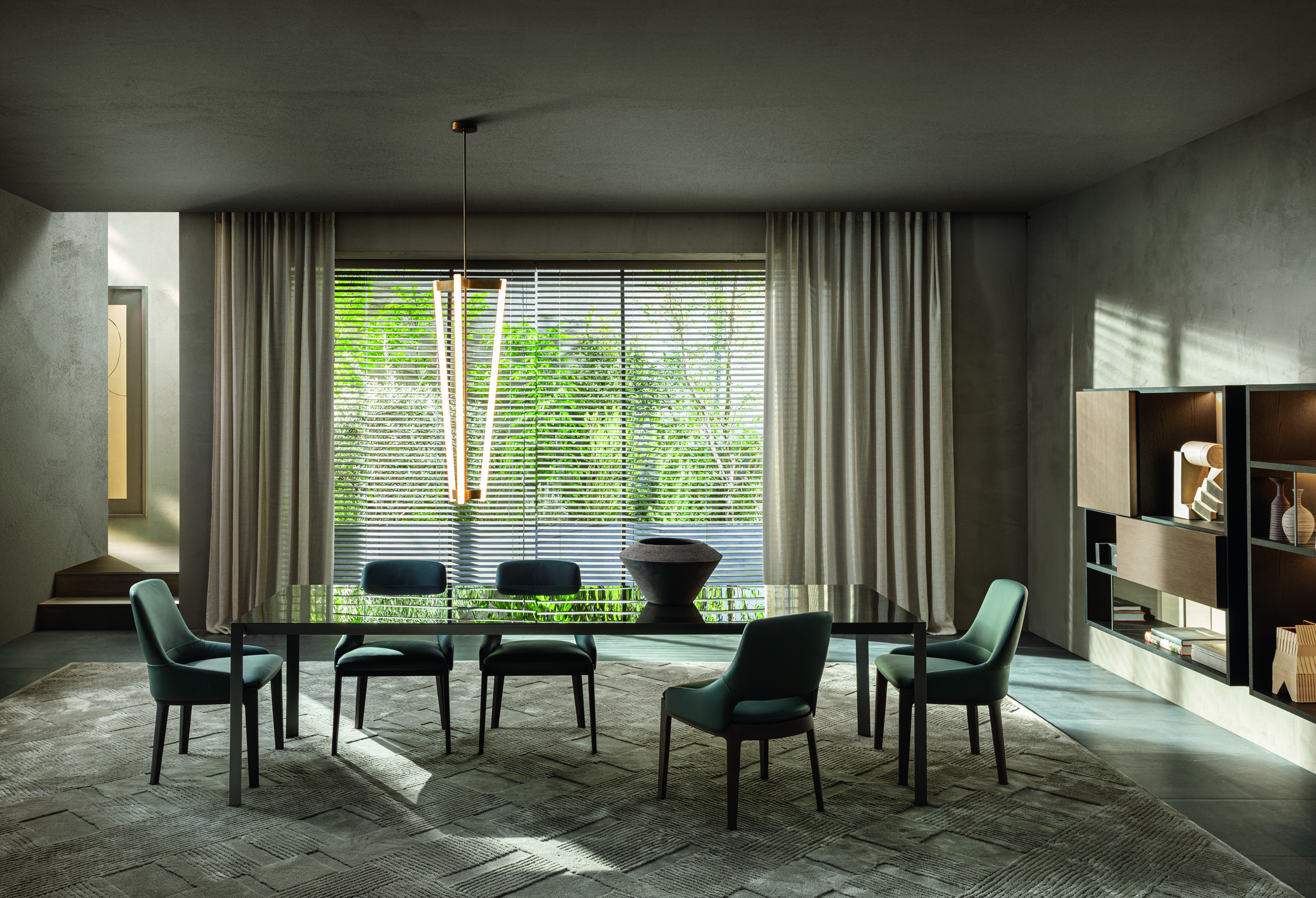 A modern and reassuring aesthetic dictated by the use of rich and material finishes: the natural grain of the thermo oak enhances the high craftsmanship of the project, while pewter defines the design.