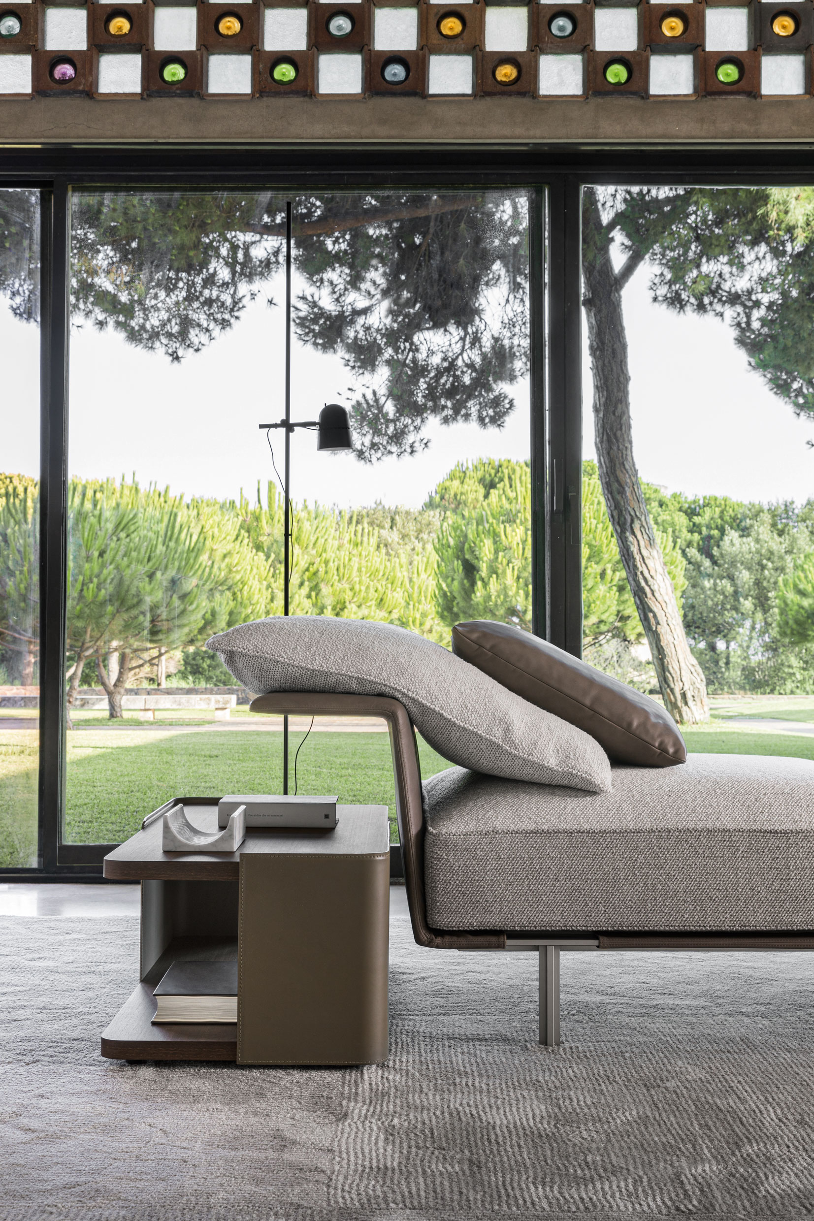 “Two refined materials, leather and timber, creating a subtle yet contemporary language by the contrast of their respective thicknesses. Simple shapes rhythmed through open and closed parts, the coffee tables are a nice addition to the Gregor Sofa collection.”