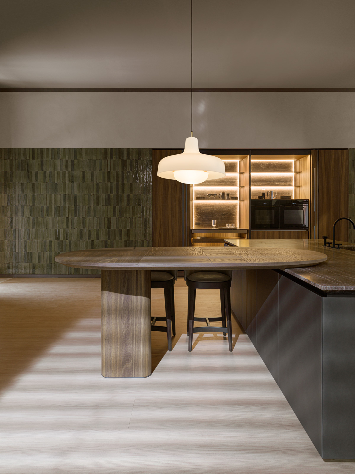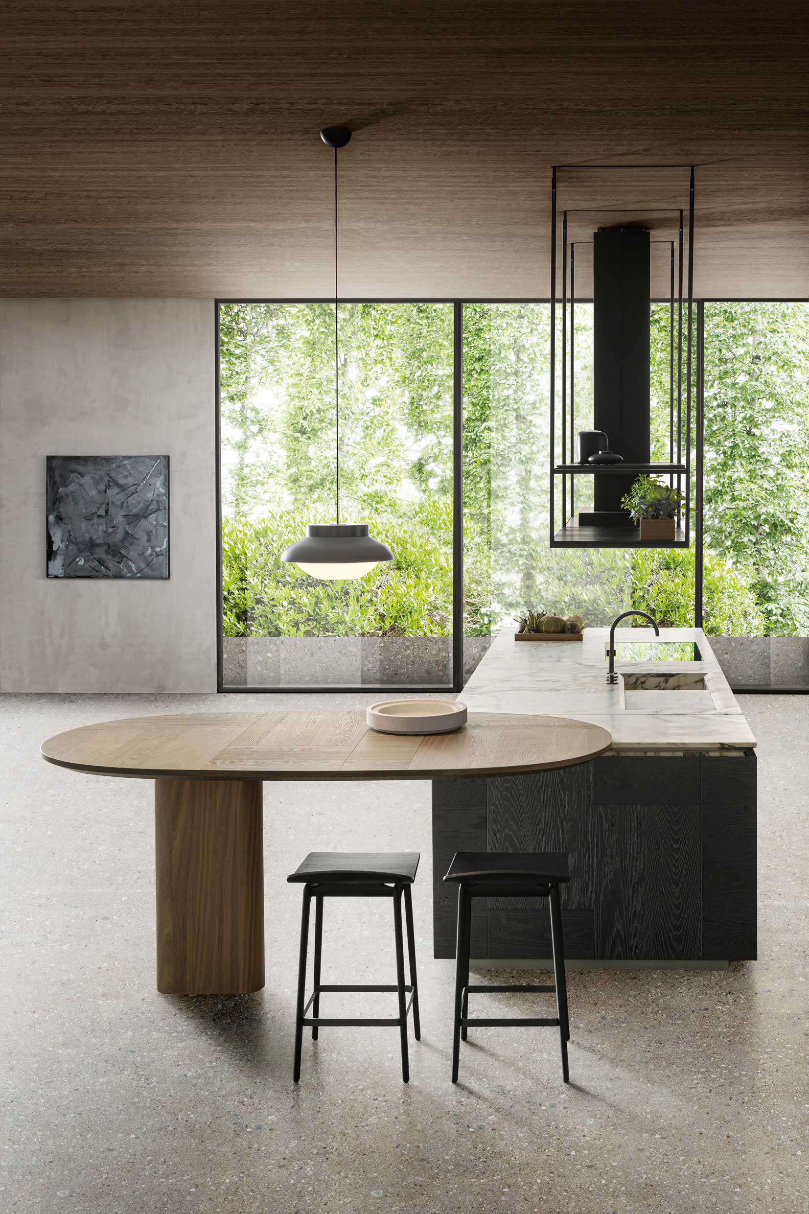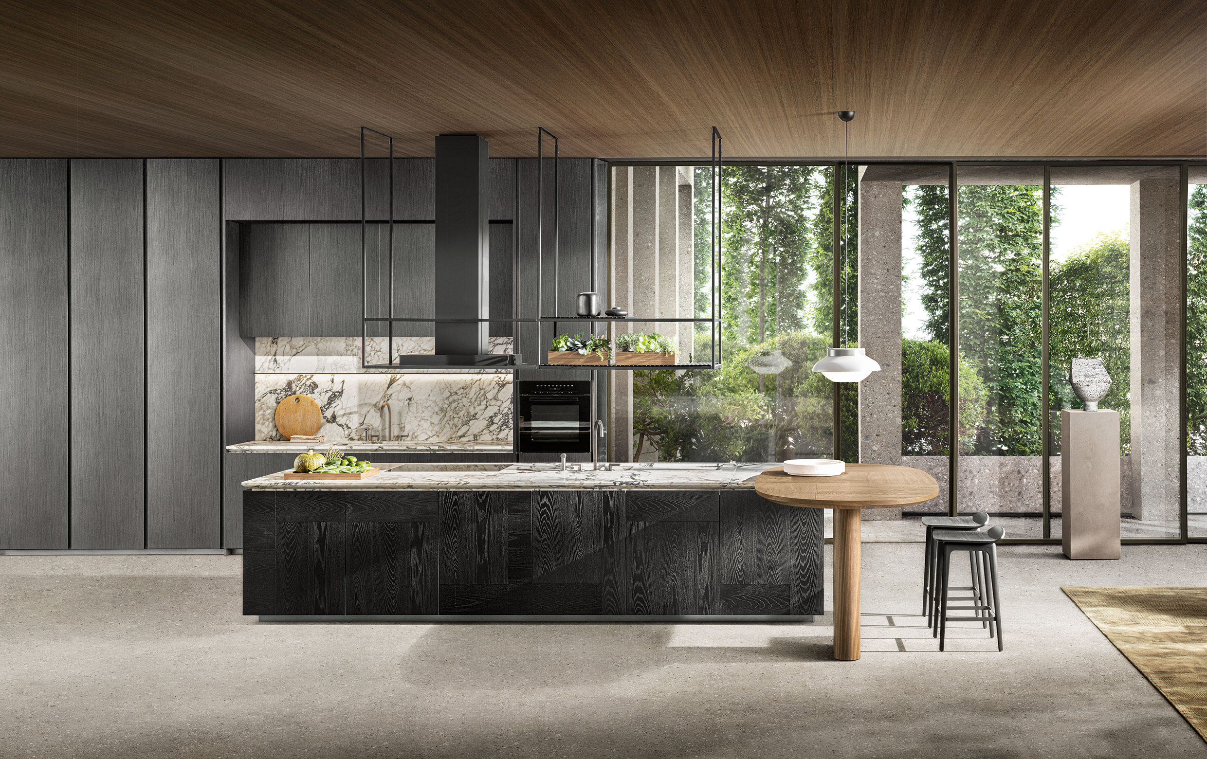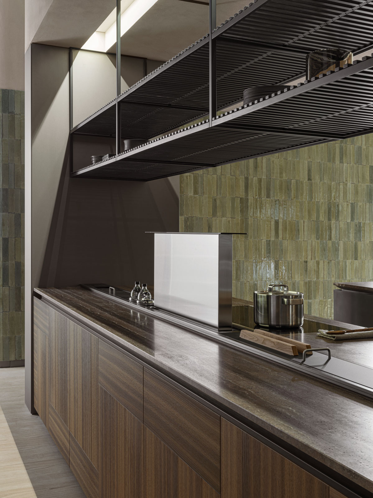 Its surfaces intersect to create patterns of light and shadows, solid worktops with important customisable sections with almost imperceptible profiles or sections chiselled like sculptures.
