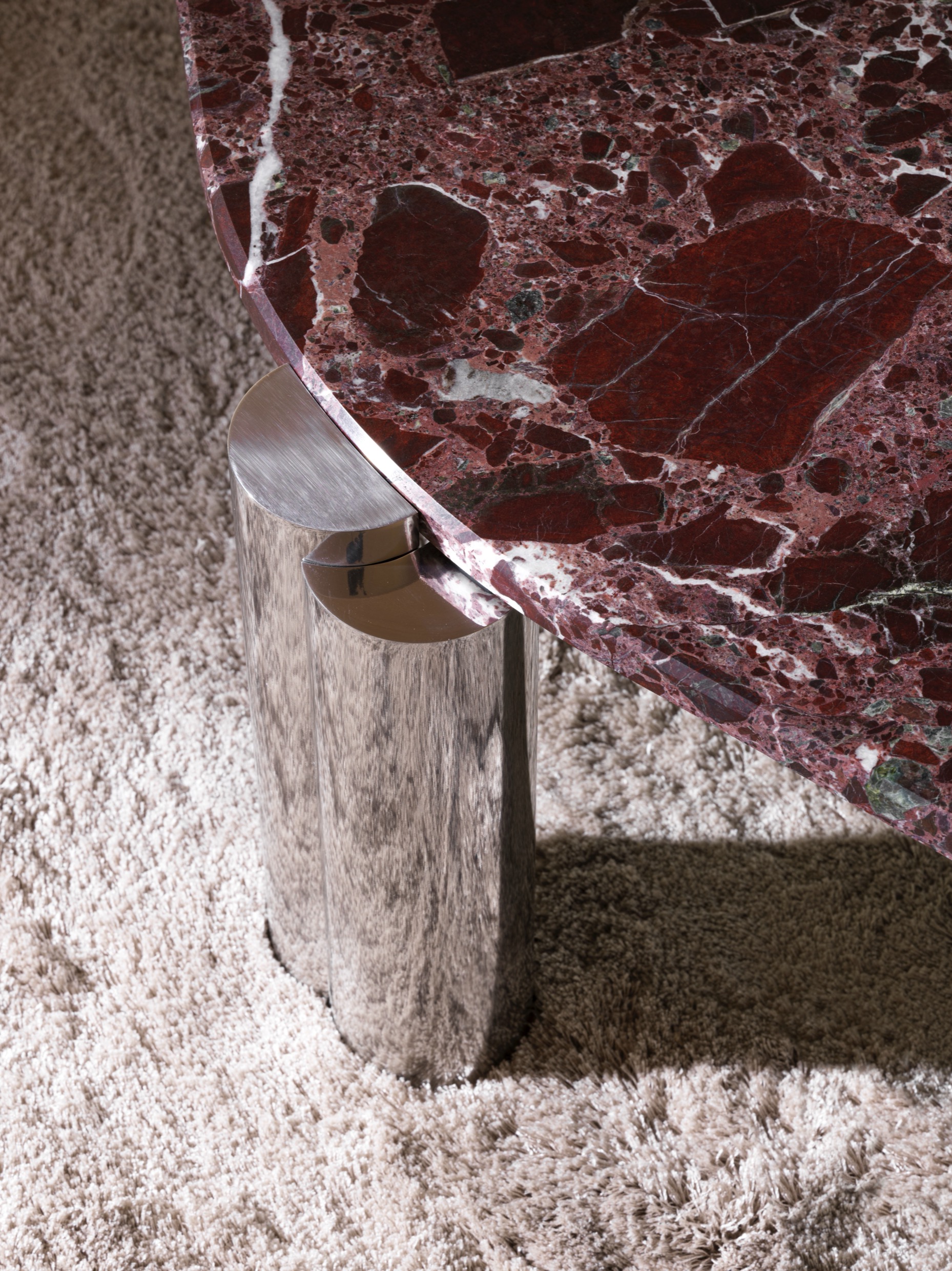 A study in contrast and refinement, Maylis is a sculptural coffee table that balances geometric precision with organic richness. Designed by Christophe Delcourt, its hexagonal-multiform top is available in marble, tempered glass, and glossy lacquered finishes, each offering a distinctive aesthetic to the table. This bold yet fluid design integrates seamlessly with Delcourt’s wider collection, bringing a sense of movement and versatility to contemporary interiors.