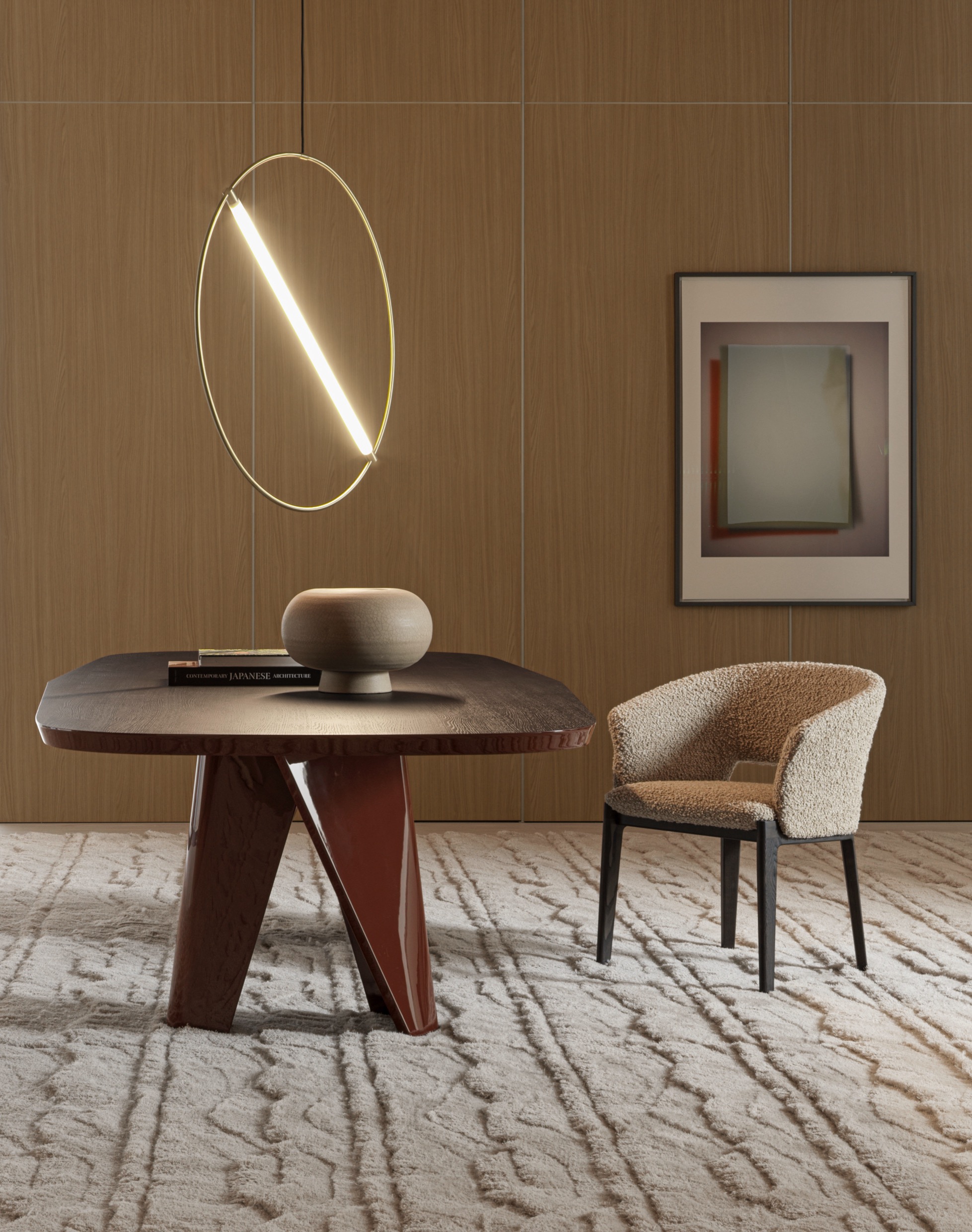 Designed by Marta Ferri for Molteni&C, Orizzonti is a refined wool rug that embodies the essence of warmth and depth within contemporary living spaces. Inspired by vast landscapes stretching toward the horizon, its intricate tufted weave plays with varying lengths, creating a tactile surface that enhances both visual and sensory appeal.
